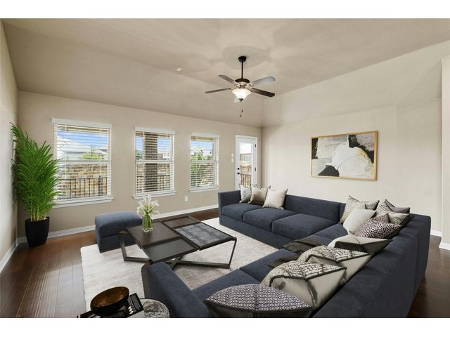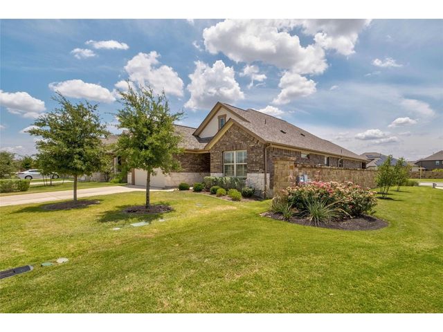 Built in 2018 and located in the highly sought after Palmera Ridge subdivision, this stunning home sits on a well sized corner lot with custom landscaping and has 2,197 sq ft of living space. 2132 Montesol features 4 bedrooms, 3 baths, a formal dining room, a large living area with an abundance of natural light, a beautiful kitchen with an island that allows for bar stool seating, a fantastic backyard patio, and a 2 car garage. You will find the three guest rooms at the front of the house, where two share a hallway bath containing a shower/tub combo and the third has an en-suite bathroom with a walk-in shower, making this home ideal for those needing a second primary bedroom or wanting an in-law floor plan. The entryway leads to a fabulous back of the house where you will find the kitchen with numerous cabinets, granite countertops, stainless steel appliances, and a large island that is open to the multi windowed living and dining areas, perfect for family gatherings or celebrating holidays and special occasions. The wood flooring continues into the sizable primary bedroom and has beautiful bay windows and a spacious en-suite bathroom equipped with a double vanity, an oversized walk-in shower, and a large walk-in closet. The handsome backyard has an ample covered patio with a connected deck leaving plenty of space for seating and grills and is ideal for cookouts or enjoying the magnificent Texas evenings. This amazing home is just minutes from shopping, parks, walking and biking trails, unlimited dining options, and provides easy access to I-35 and the tolls.