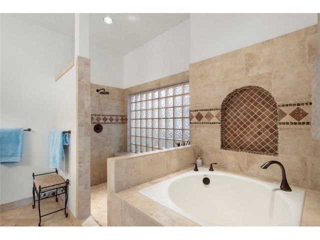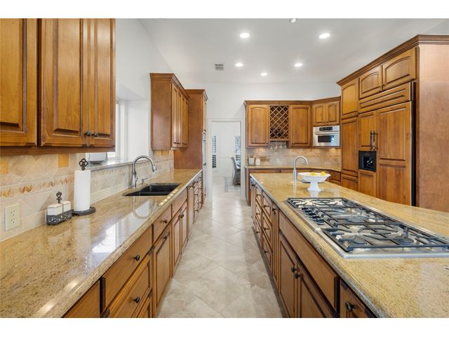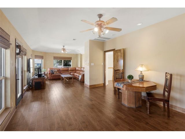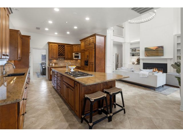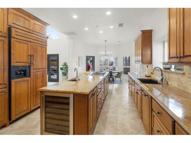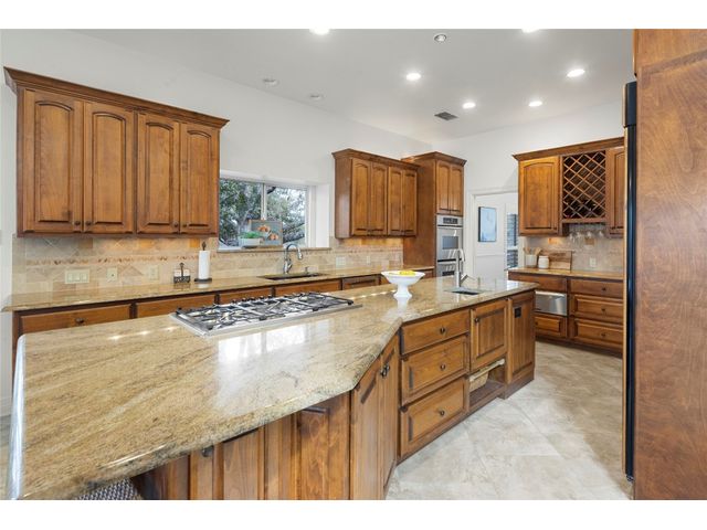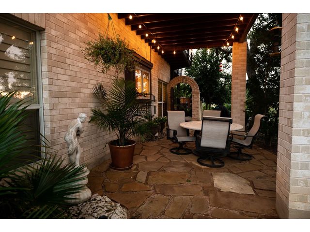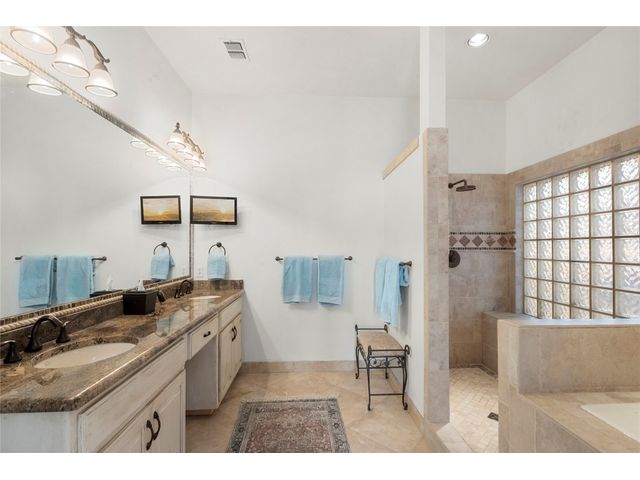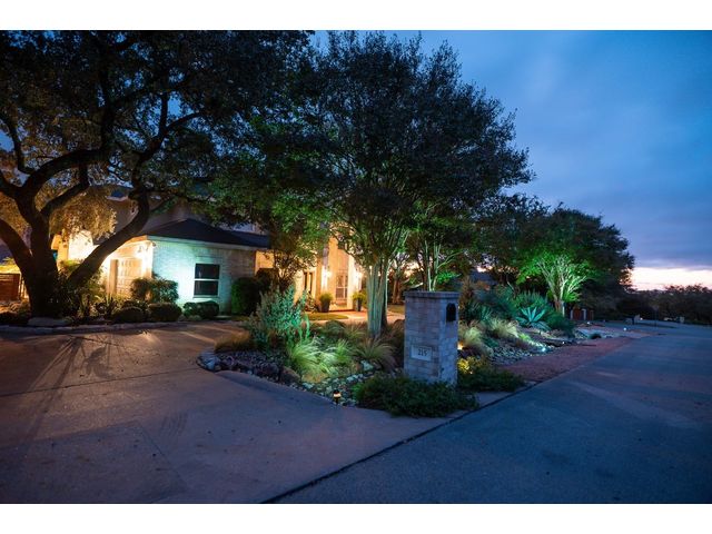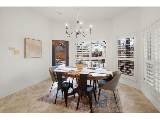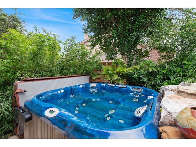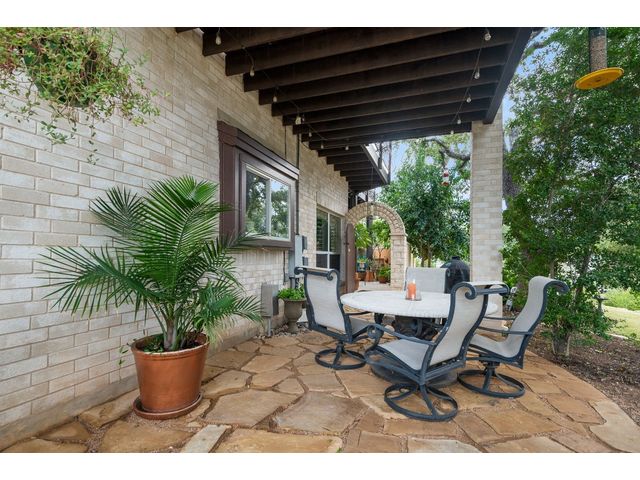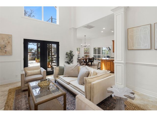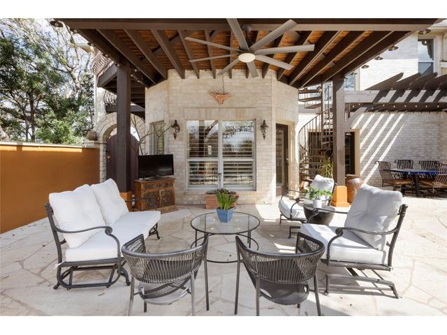 One-of-a-kind custom home in coveted Old Lakeway nestled on a .309-acre corner lot with 180° panoramic hill country and partial lake views from the second level, & incredible indoor/outdoor entertaining areas including a stunning private pool, outdoor kitchen, Spanish-style courtyard, & 2nd-floor terrace. This amazing property offers the peace & quiet of tranquil living all while in the heart of Lakeway, within 5 minutes of the Lakeway City Park, the Lakeway Marina, the World of Tennis, & the Hills Country Club. The stately brick residence offers 3,606sf of open-concept living space featuring high ceilings, beautiful travertine-look tile & wood flooring, custom built-ins, elegant moldings, plantation shutters, & more. Enjoy a main-floor formal dining room, a spacious living room with a gas log fireplace, & a gourmet eat-in kitchen complete with center island, breakfast bar, granite countertops, under & over cabinet lighting, built-in refrigerator, wine fridge, & gas cooktop. The primary suite is also located on the main floor with wood flooring, a large walk-in closet, & a private en-suite bath with a marble-topped dual vanity, Japanese soaker tub, & walk-in shower. The 2nd floor hosts 3 additional beds, 2 baths, a home office with custom built-ins, & a large entertainment room with wet bar & access to the private terrace. The backyard retreat is beautifully landscaped with a Caribbean/Tahiti resort atmosphere & is surrounded by a Tuscany stucco wall with sconce lighting providing privacy for all your outdoor entertaining. The backyard also boasts a stunning in-ground pool with bench seating all the way around & fun water features, a separate heated spa, outdoor fireplace, wood-burning smoker & grill, an outdoor kitchen, sitting area around the TV, & a separate dining area. This unique home offers an unparalleled living experience in one of the most sought-after neighborhoods in Old Lakeway. Don't miss out on the chance to make this unique home your own!