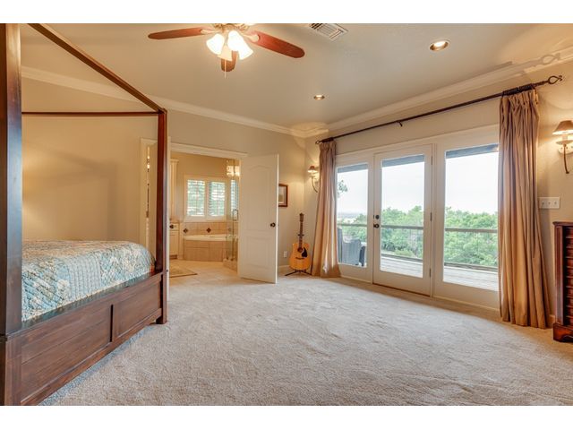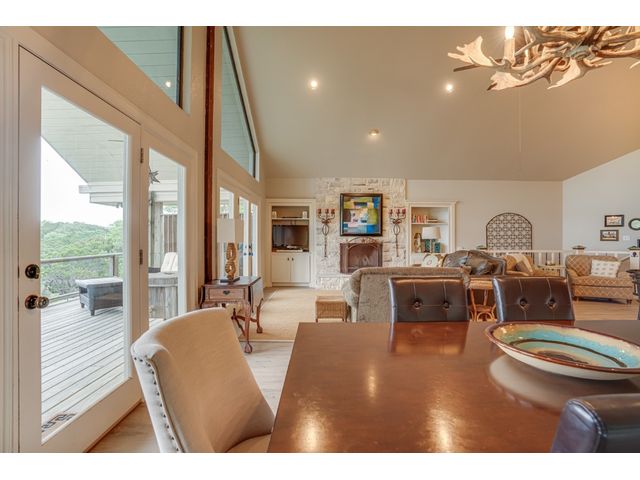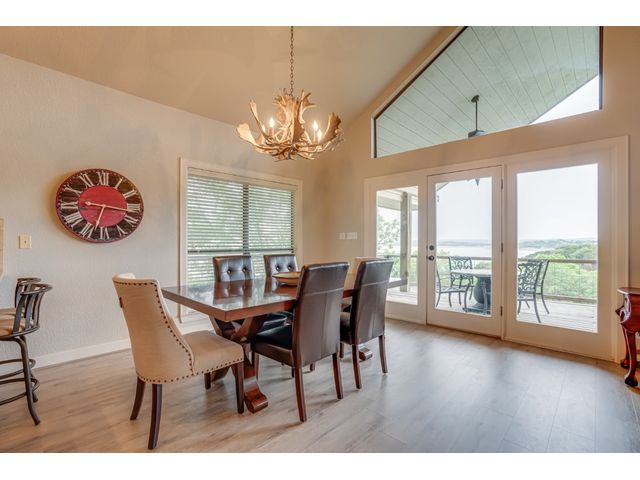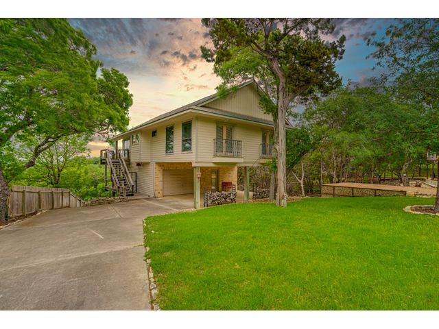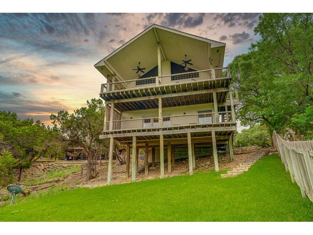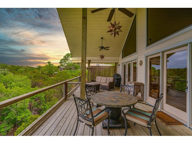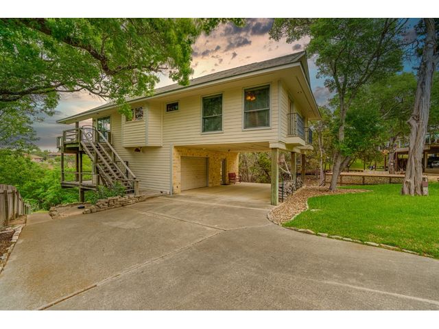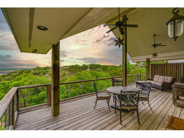 Views + Waterfront!! Outlaw Builders Home - used only as a vacation home by current owners, so in fantastic shape. Freshly updated kitchen including brand new quartz countertops, new oven/range, new dishwasher, new sink. Freshly updated bathrooms with brand new quartz countertops, sinks and fixtures. Fabulous decks (north facing) overlooking Canyon Lake - very private and quiet, perfect for morning coffee or evening wine. Lower level of the house includes the primary suite, with private deck + laundry room. Upper level features freshly updated kitchen and huge entertaining great room with wall of windows overlooking the lake. Upper level also included 2 additional bedrooms with private Juliet balconies. This home is a haven for those seeking a tranquil lakeside lifestyle.