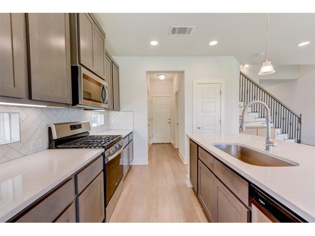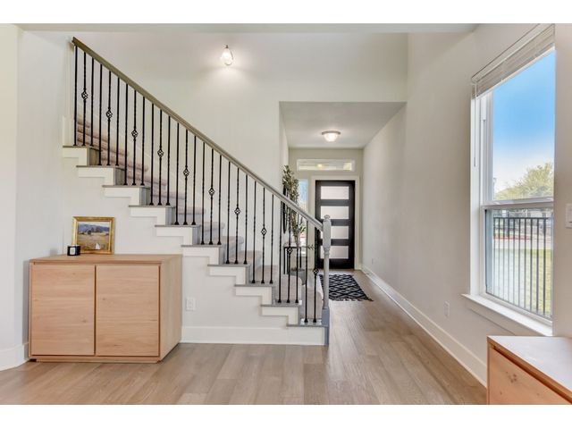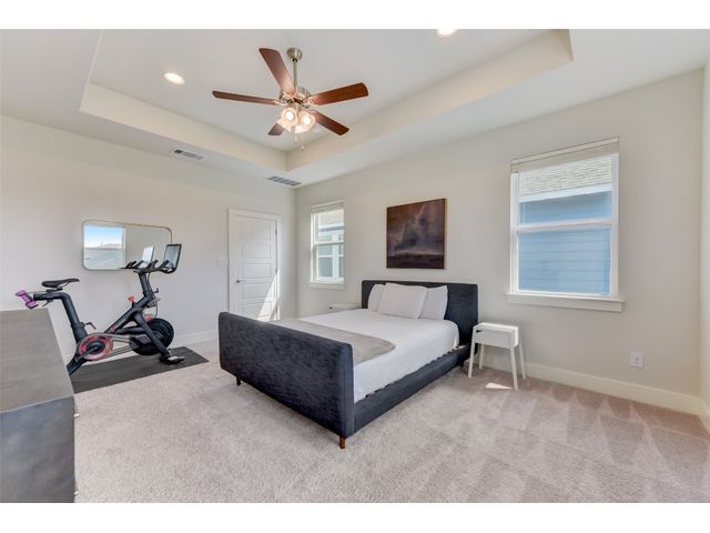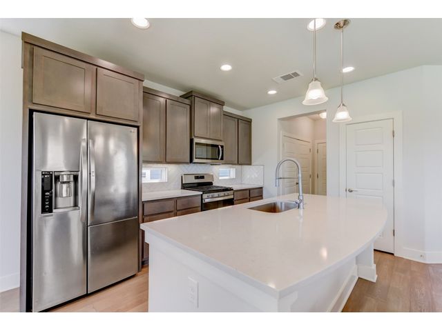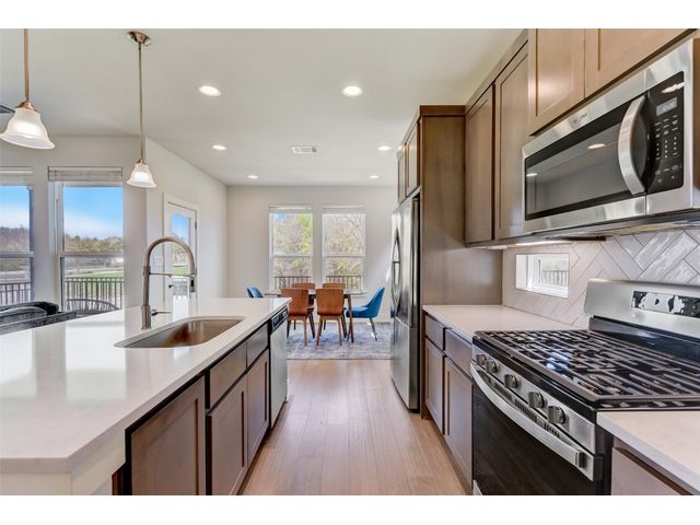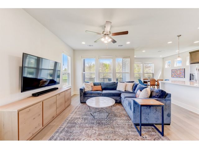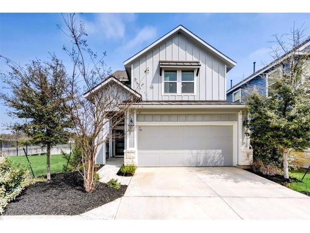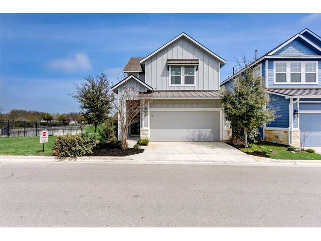 PRICE REDUCED! Welcome to your dream home in Kyle's Plum Creek! This two-story Craftsman style home in the gated Peninsula section offers 3 bedrooms, 2.5 baths, and 1819 sq ft of living space. Inside, you'll find hardwood floors, high ceilings with recessed lighting, upgraded kitchen cabinets, backsplash, and quartz countertops, complemented by brushed-nickel hardware and contemporary-style 6 inch baseboards throughout. The primary bathroom is upgraded with marble tile, and you will love the expansive "super" shower. In the primary bedroom - the tray ceiling with recessed lighting adds a touch of sophistication and elegance. Enjoy the community pool and park just a stroll away, with local eateries and shops a quick drive down the road. Situated on a corner lot with no rear neighbors, the home has greenbelt-views from every window and cordless blinds throughout means unobstructed views while preserving the clean, interior aesthetic. Relax on the elevated covered patio, ideal for leisurely afternoons. With walk-in closets in every bedroom, you'll have plenty of room for storage and more space to do the things you love. Built-in electrical outlets in the roof soffits make it easy to light up for the holidays. Ample curb appeal with a stylish upgraded front door - this modern sanctuary awaits your personal touch. Don't miss out—come see it today!