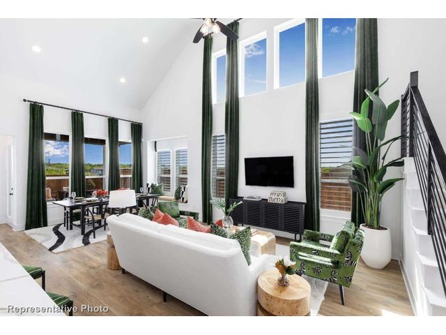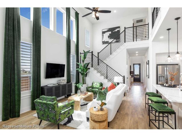 MLS# 9979984 - Built by Highland Homes - Ready Now! ~ Welcoming two story plan with vaulted ceilings! Designer touches throughout including wood flooring, upgraded cabinetry, built in appliance package. Smart home features, tankless water heater, full sod and sprinkler system!