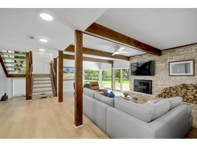 This inviting waterfront home in the secluded Manana West neighborhood offers classic Austin charm with modern updates, perfect for both full-time living or weekend escapes to the lake. Situated on a large corner lot shaded by massive pecan trees, this lakefront home exudes original charm and character, from the stone fireplaces to the enchanting rock garden under the staircase to the classic 70’s architecture. Inside, enjoy ample natural light and scenic views through nearly every window. Recent updates marry old-world charm with contemporary amenities, including new wood floors, paint, windows, HVAC, countertops, and appliances. The private covered boat dock, nestled in a quiet and secluded cove, provides endless opportunities to explore Lake Austin for a day of skiing or a serene evening cruise. Or take a stroll down to Ski Shores for a relaxing dinner and drink on the water. Whether you are seeking a primary residence or a weekend retreat, this Lake Austin home is a rare waterfront find. Don’t miss your opportunity to own this very limited piece of Austin.