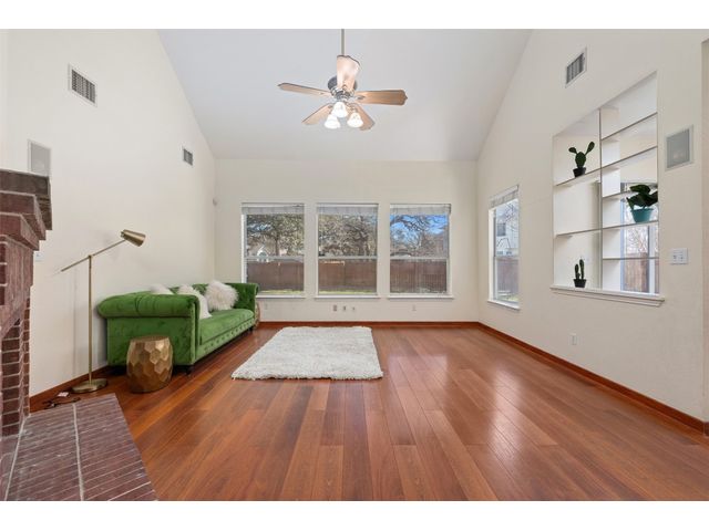 Buyers receive a .5% lender loan credit (calculated on the loan amount), up to $4000, when they are referred Lender credit can be applied to lender fees or buydown to a lower rate. • We offer our Close-On-Time guarantee Cedar Park charmer! This house is way bigger than it seems, plenty of gorgeous mature oak trees, vaulted ceilings lots of light, This house boasts a breakfast nook, covered patio and formal dining room as well as a huge vaulted ceiling in the den. Primary bedroom is on the main floor, with walk in closets, two car, garage and guest bathroom conveniently located on the main floor alongside the laundry room. Three bedrooms upstairs with laminate flooring and berber carpeted stairs, this house has one of the biggest back yards in the neighborhood and a convenient location to local schools, shopping and dining. New roof Newly stained fence New ACs New Water Heater
