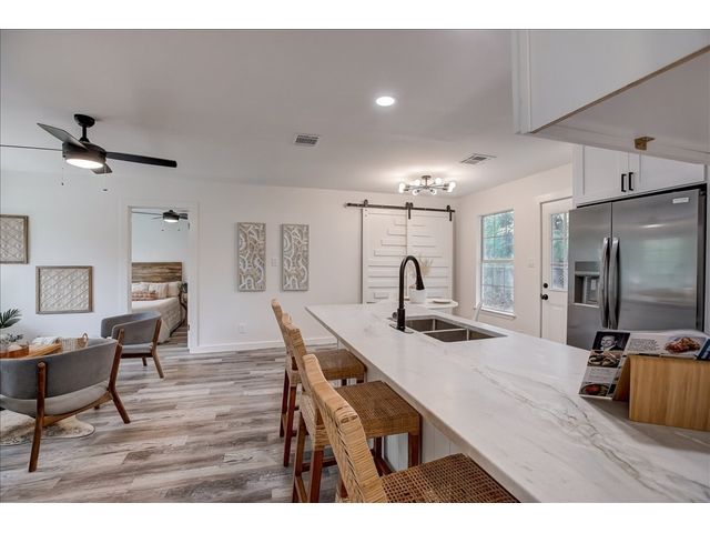 ASK ABOUT SELLER BUY DOWN CONTRIBUTIONS Renovated, South Austin Bungalow situated on a large corner lot in one of Austin’s hottest zip codes. Beautifully updated inside out on a fantastic lot. Living areas flow seamlessly and are bathed in natural light. Crisp updates in the kitchen include vibrant white glass front cabinets and gorgeous countertops complimented by a thoughtfully chosen backsplash. The inviting primary suite on the opposite wing of the house from the secondary bedrooms is accompanied by a spacious ensuite bath. Other recent updates include lvp flooring throughout, fresh paint inside out, fixtures, lighting and windows. 5yr old roof, 2020 HVAC and 2019 water heater. Enjoy a fenced yard with so much room to expand the outdoor space on this large corner lot to for even more room to run, play, garden or even consider increasing the square footage down the road. For additional storage needs, a well built shed on slab is positioned to the side of the yard and does not impede the full use of the outdoor space. Conveniently located off Menchaca and Stassney near Crockett High School this home tracks to Sunset Valley Elem. and Covington Middle school. 15 minutes to DT Austin, 25 to the Austin Bergstrom Airport, this home enjoys convenience and fun in every direction including all that is to come with the expanding entertainment district near Slaughter and Menchaca. Make this your Homestead, consider STR if you split time between cities or leverage medium or long-term rentals for income generating opportunity if this is not a full time residence.