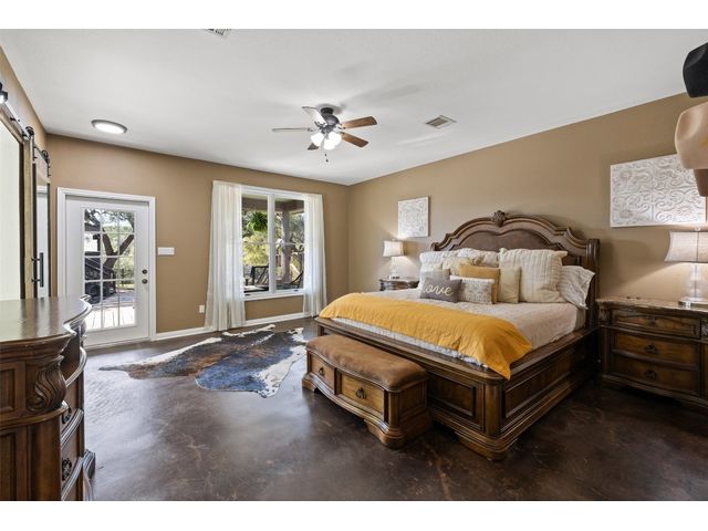 Sitting on 5 acres, this beautifully updated 4-bedroom, 2-bathroom home merges classic designs with modern comforts. The living room features a vaulted ceiling adorned with a wood beam, adding a touch of architectural elegance and openness to the space. An office/playroom extension contributes additional square footage, offering versatile space for work, play, or relaxation. Anderson windows installed throughout the home ensure energy efficiency and provide ample natural light, enhancing the beauty of the interior spaces. The attention to detail continues with custom cabinetry in the kitchen, pantry and master bathroom, showcasing exquisite craftsmanship and providing ample storage solutions. Just steps away from the main house, a 587 sqft detached entertaining area, complete with a wet bar, provides an ideal space for hosting gatherings or enjoying leisure activities. Outdoor living is redefined here, with an above-ground pool complemented by a full deck and pergola. This outdoor oasis is equipped with electrical setup, perfect for entertaining or enjoying serene evenings. To top it all off, the backyard overlooks the stunning limestone-bottom Sycamore Creek. The home is nestled within a lush, manicured landscape, featuring towering trees and a lawn adorned with Zoysia grass, maintained effortlessly with a full sprinkler system. The entirety of the yard is secured by a tastefully designed wrought iron fence, offering both privacy and security. This property combines the charm of the Texas Hill Country with luxurious living, making it a must-see for those seeking comfort, elegance, and a touch of nature.