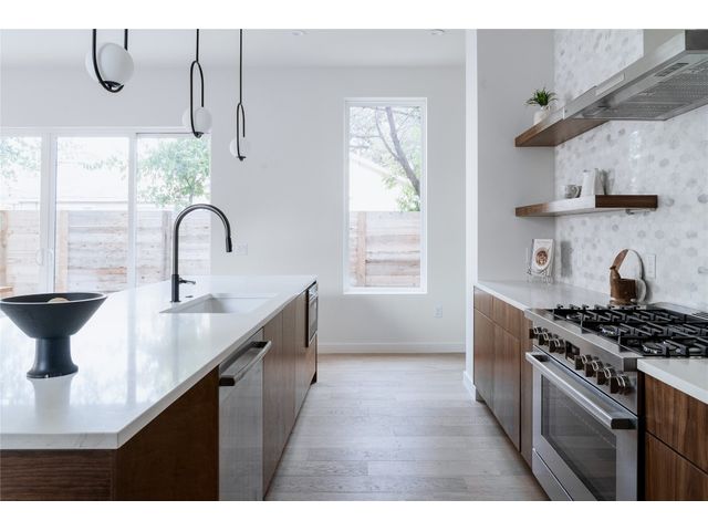 Welcome to 1176 Oak Grove Avenue—a stunning brand-new construction located just 8 minutes from downtown Austin. This modern estate offers nearly 2,000 square feet of pristine living space, blending contemporary design with top-of-the-line features. Step inside to discover engineered wood floors that flow seamlessly throughout the home, setting the stage for the open-concept living area. The preferred open kitchen style is a culinary artist empty canvas, equipped with Bosch stainless steel appliances, quartz countertops, and a wine fridge. The living area boasts a built-in surround sound system, perfect for entertainment, upstairs, the spacious primary suite is your private oasis. Unwind in the luxurious bathroom featuring a soaking tub, walk-in shower, and dual vanity. Energy-efficient windows and a smart thermostat ensure year-round comfort and energy savings. Outside, enjoy the Texas evenings on your front porch or balcony. The home also includes a one-car garage with a sleek metal roof, adding to its modern appeal. Located in the heart of East Austin, this home is surrounded by vibrant culture, trendy shops, and some of Austin's best dining options. With proximity to major highways and schools, this home offers the perfect balance of urban living and suburban tranquility. Don’t miss the opportunity to own a piece of modern elegance in one of Austin’s most sought-after neighborhoods.