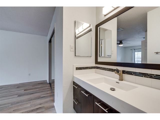 Absolutely Priced To Sell* Awesome Flooring throughout-NO CARPET*** High end W&D included***Fridge also included*** Modern kitchen***Really cool Lighting***Nice walk-in shower along with two separate vanity sinks. The back yard landscaped with Pet friendly astro turf grass finished out with black rubber mulch border***Peaceful neighborhood***Come walk your dog after work and experience the relax in the neighborhood!