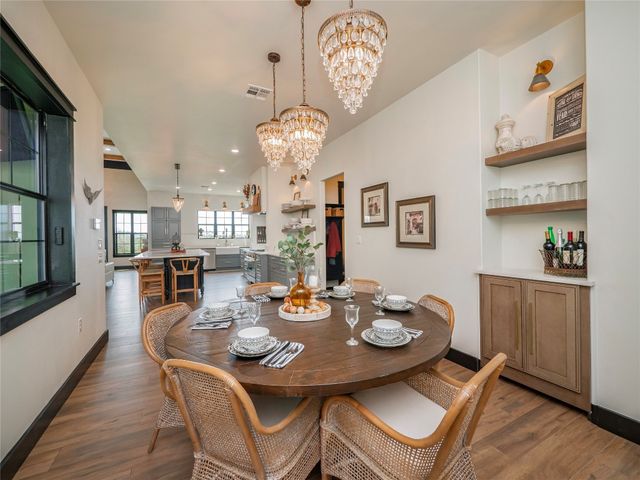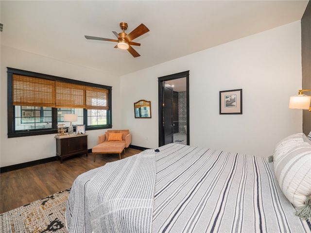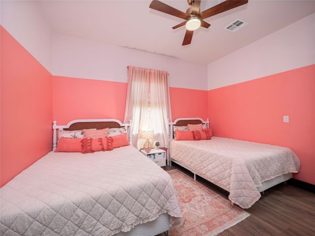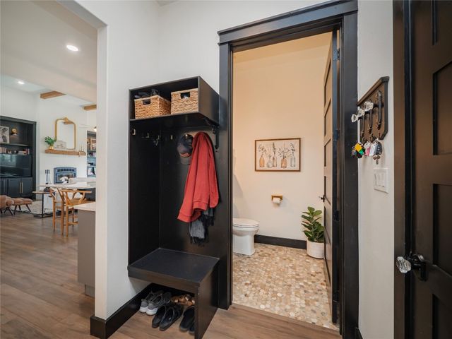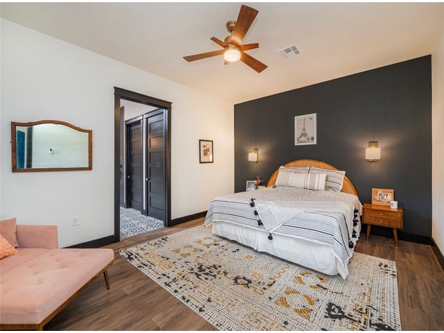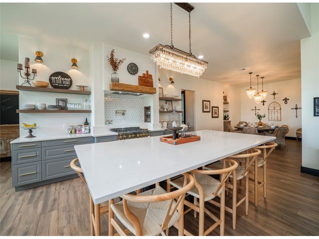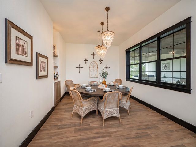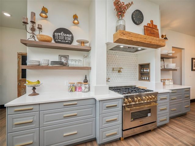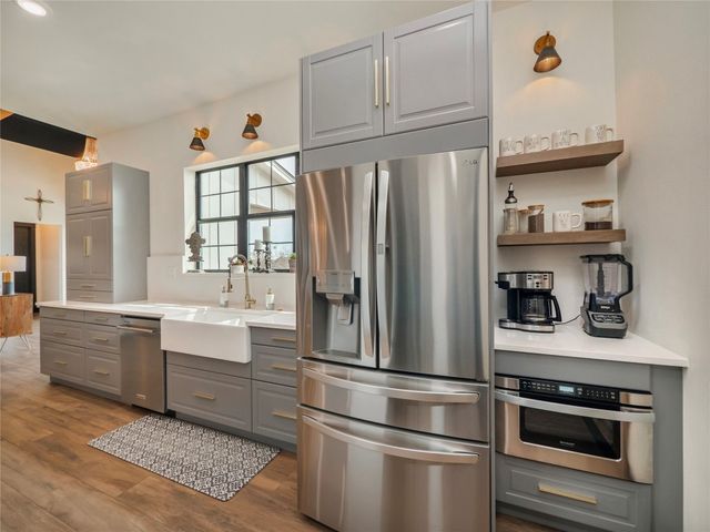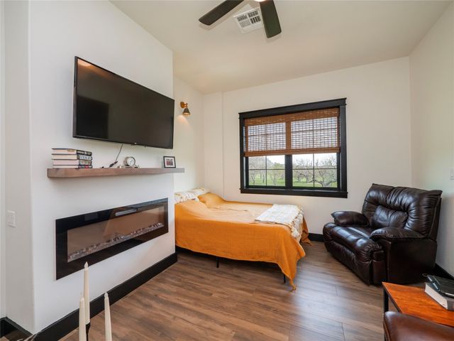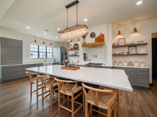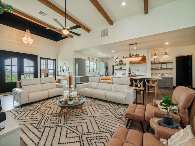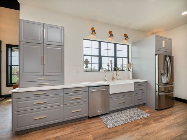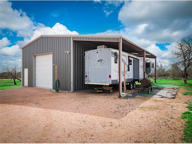 This gorgeous, custom-built home in the Granite Hills subdivision in Burnet is a stunning 3 bed, 2.5 bath property with over 2552 square feet of living space. Situated on a spacious 5-acre lot, this home offers plenty of privacy and room to spread out. As you enter the home, you will notice the attention to detail and high-end finishes throughout. The kitchen is truly a chef's dream with a 6 burner propane convection oven, built-in microwave drawer, and a large island with quartz countertop and electricity. The kitchen also features quartz backsplash, pot filler, and ample storage space. The open concept living area boasts 14-foot ceilings and wood beams for added character. An electric fireplace in the third bedroom adds warmth and charm to this already inviting space. One unique feature of this home is the mud room inside the garage door - perfect for storing shoes or other items when coming inside from outside activities. The laundry room also has its own sink for added convenience. The master bedroom is not only spacious but also includes soundproofing in its walls for additional peace and quiet. The en-suite bathroom features a large wet-room with shower and soaking tub that is wheelchair accessible. Outside, there is plenty of space to entertain or relax on the covered patio which includes an outdoor kitchen complete with grill & sink w/granite countertops. There's even electricity & propane setup for future use such as adding a pool or hot tub. In addition to the attached garage that can accommodate two F250 trucks, there's also a separate metal building on-site that measures 30 x 40 feet! This building has its own septic system set up for water/electricity & an awning specifically designed for RVs - including a convenient 50 amp plug! Other notable features include water softener system, tankless hot water heater, backup generator with plug and propane fuel supply, and a setup for electricity & propane for future use.