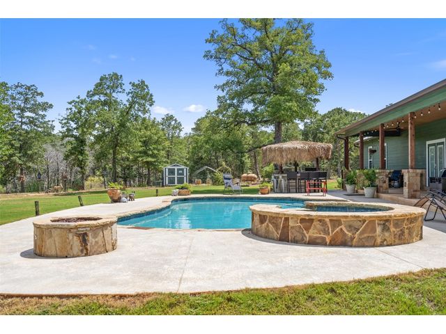 Owners offering the option for Buyer's to purchase ADDITIONAL ACREAGE, Hidden Gem tucked away in the pines, surrounded by nature. WILDLIFE EXEMPTION. This country oasis has everything you'll ever need and want. Beautiful custom home on 12 acres, Ample Privacy, A Salt water pool with a Robot Cleaner, a hot tub, 30x60 Barn with 20 x 30 enclosed and climate controlled, Water Well with filter system, Irrigation system - Front yard/ Back yard/ Flower beds-supplied by the water well to save money! Outdoor Kitchen/ Tiki Bar (with bar stools, Refrigerator, 2 cook burners,Grill, Sink with water supply, TV connection and radio) Fenced front yard with dog door access, Automatic Solar Entry Security Gate for property access, Two Portable buildings, Seamless Metal Roof, Sprayed-in foam insulation throughout house and barn, Tankless Water heater for endless hot water, Fully stocked large pond - stocked with largemouth bass/ Blue Channel Catfish / Perch (copper nose and bluegill), Floating dock /Pier with handrails and a sink/cleaning station for easy cleaning of fish. The home itself has an abundance of storage space with all the custom cabinets, Oversized laundry room and master closet, jack and Jill bathroom in guest rooms, Open floor plan, double door garage attached. Easy to clean vinyl flooring, master suite opens to back patio, master closet has custom built in dressers, granite throughout. Private entrance with gate & gate code. Come sit back, relax, and enjoy all this property has to offer.