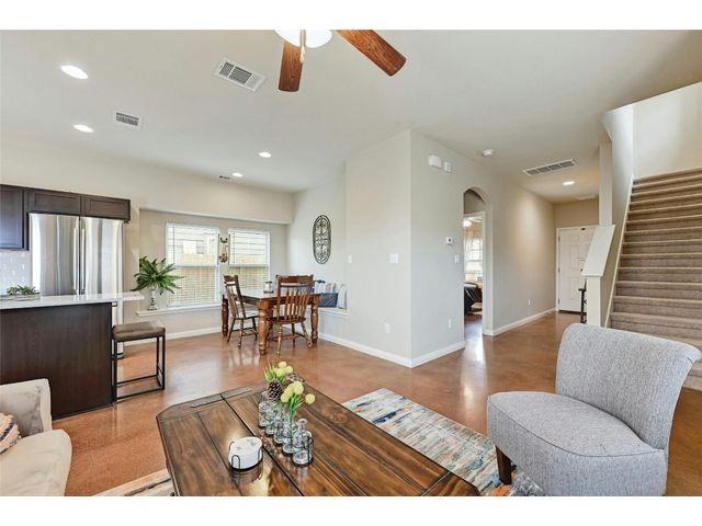 This delightful home will charm you with its unique blend of comfort and style. Built-in 2015 and meticulously cared for by its sole owner, this 1346-square-foot abode is a testament to thoughtful design and loving maintenance. The inviting covered front porch beckons as you approach, promising cozy evenings and friendly gatherings. The airy open floor plan unfolds, revealing a spacious living area bathed in natural light. Upstairs, the magic continues with two cozy bedrooms, a versatile loft space, and a full bathroom, all leading out to a spacious private balcony, offering a serene retreat to relax and rejuvenate. Storage abounds throughout the home, ensuring ample space for all your treasures. But that's not all - this home boasts a plethora of upgrades that elevate its appeal: *** Low HOA Fees *** Maintenance Xeriscape Front Yard *** Stained Concrete Floors *** Fresh Interior Paint *** Updated Kitchen with quartz countertops, a stylish backsplash, and a stainless farmhouse single-basin sink. *** Updated Bath *** Water Softener Loop *** Recent Carport Installed *** New Back Patio *** Concrete Slab *** Mature Trees provide shade, privacy, and a serene atmosphere. Outside, the possibilities are endless. Whether you're lounging on the inviting front porch, sipping lemonade on the second-floor balcony, or hosting epic BBQs in the spacious backyard, you'll find endless opportunities for relaxation and enjoyment. Plus, with just a quick stroll to the community park and playground, food trucks on Wednesday evenings, and a monthly farmers market, you'll experience the true essence of East Austin living. Conveniently located just minutes from the buzzing Tesla Giga Factory, a short 15-minute drive to Austin Bergstrom Airport, and a mere 20-minute drive to the vibrant heart of Downtown Austin, this home offers the perfect blend of tranquility and accessibility. Take your chance to own this affordable East Austin gem.