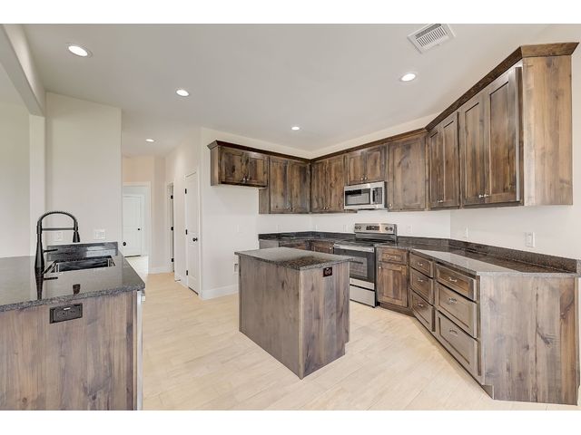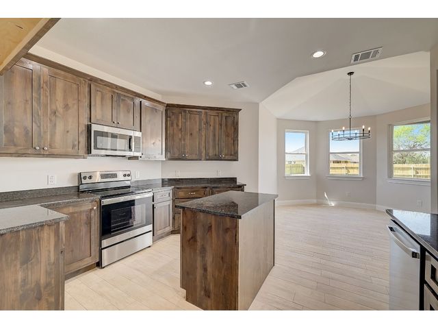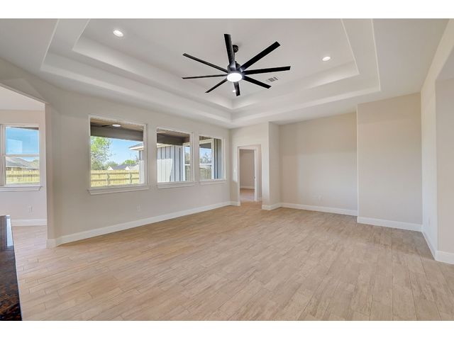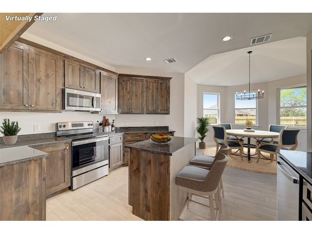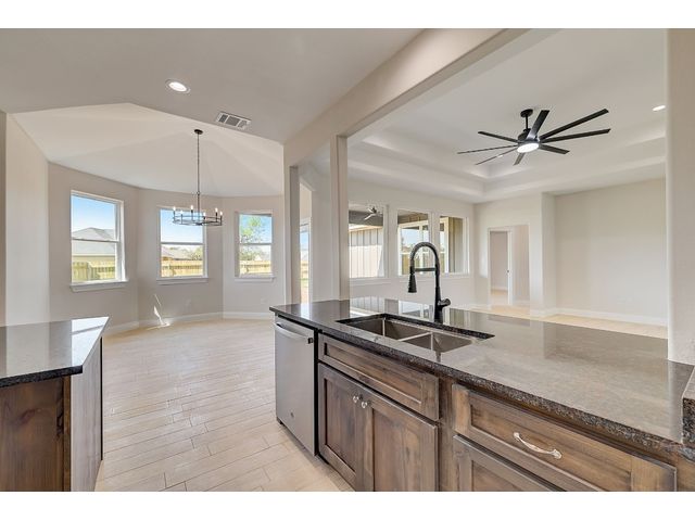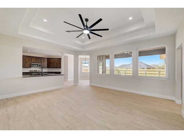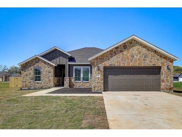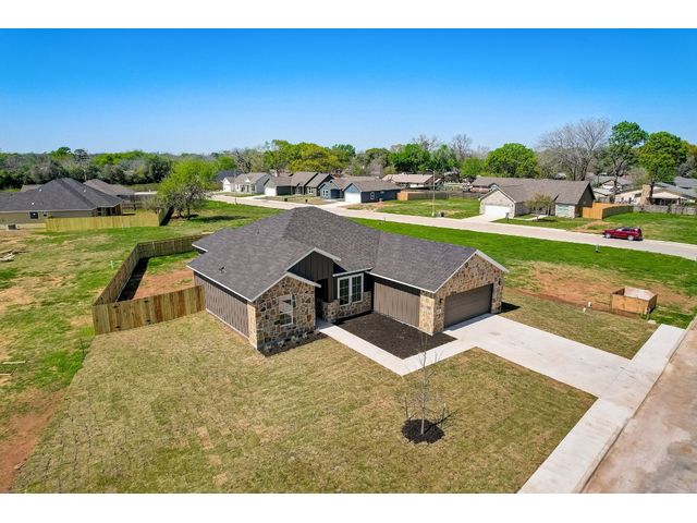 Special FHA and VA Financing is available, including grant and down payment assistance! Experience Smithville’s historic and small-town charm, with local parks, recreation, and access to the Colorado River! No waiting for completion & you’ll be the first owner in your beautiful new home created by Don Barker Homes in the new M5 subdivision. Located on .283 acres, this home is showcased on a larger interior lot! The carefully designed 2132 sf. open floor plan provides a large, fenced backyard with plenty of space and flexibility for all families. 4 bedrooms, 3 full bathrooms plus a separate dining or office area! Beautiful tile plank flooring throughout (no carpet), large open living area, 9 to 10ft. tray ceilings, plus ample storage throughout. The engineered Kitchen has a center island with granite countertops + an eat-in breakfast/dining area with an octagonal vaulted ceiling. Includes custom cabinets, stainless-steel appliances, a deep stainless-steel sink with large commercial style faucet, plus a pantry. Spacious primary bedroom featuring beautiful windows, recessed lighting, walk in shower, granite vanity with 2 sinks, a separate water closet, plus a large walk-in closet with hanging racks, built in shoe slots + plenty of storage. 2nd & 3rd baths include granite vanities and shower/tub combos. Designed for efficiency, all living space is entirely foam insulated and hot water is constantly circulating for quick delivery. 2-car garage with garage door opener. Auto irrigation system is designed for future expansion. 1/2/10 Builder’s Warranty provided. Spectrum internet/cable now available. City electricity, water and sewer. See MLS docs for more information and Special Financing Option! All information deemed reliable; buyer to verify. 5 new homes with 3 floor plans available in this new neighborhood. Choose yours today!