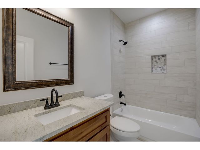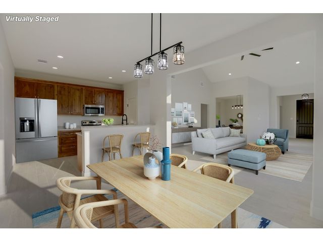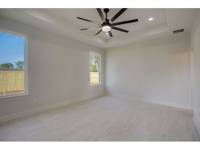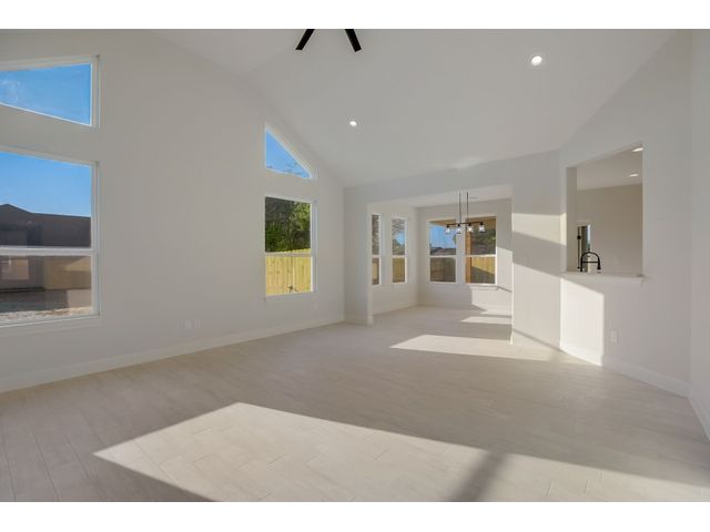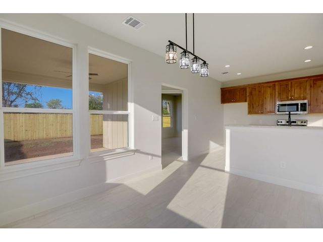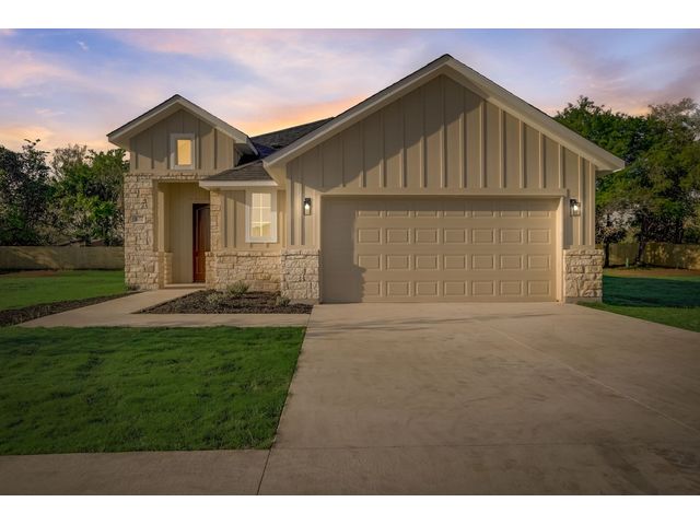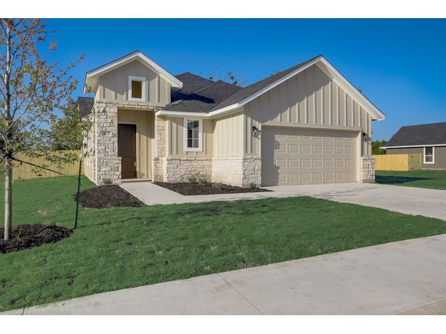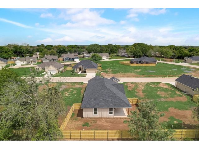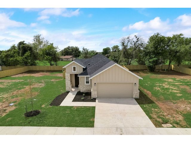 Special FHA and VA Financing is available, including grant and down payment assistance! Experience Smithville’s historic and small-town c harm, with local parks, recreation, and access to the Colorado River! No waiting for completion & you’ll be the first owner in your beautiful new home created by Don Barker Homes in the new M5 subdivision. Located on .166 acres, this home is placed for minimal yard maintenance! The carefully designed 1812 sf. open floor plan provides a fenced backyard with privacy and flexibility for all families. 3 bedrooms, 2 full bathrooms plus a separate dining or office area! Beautiful tile plank flooring throughout (no carpet), large open living area with 16’ cathedral ceiling, 9 to 10’ tray ceiling in the primary bedroom, plus ample storage throughout. The engineered Kitchen features granite countertops + an eat-in breakfast/dining area. Includes custom cabinets, stainless-steel appliances, a deep stainless-steel sink with large commercial style faucet, plus a pantry. Spacious primary bedroom featuring beautiful windows, recessed lighting, walk in shower, granite vanity with 2 sinks, a separate water closet, plus a large walk-in closet with hanging racks, built in shoe slots + plenty of storage. 2nd bath includes a granite vanity and shower/tub combo. Designed for efficiency, all living space is entirely foam insulated and hot water is constantly circulating for quick delivery. 2-car garage with garage door opener. Auto irrigation system is designed for future expansion. 1/2/10 Builder’s Warranty provided. Spectrum internet/cable now available. City electricity, water and sewer. See MLS docs for more information and Special Financing Option! All information deemed reliable; buyer to verify. 5 new homes with 3 floor plans available in this new neighborhood. Choose yours today!