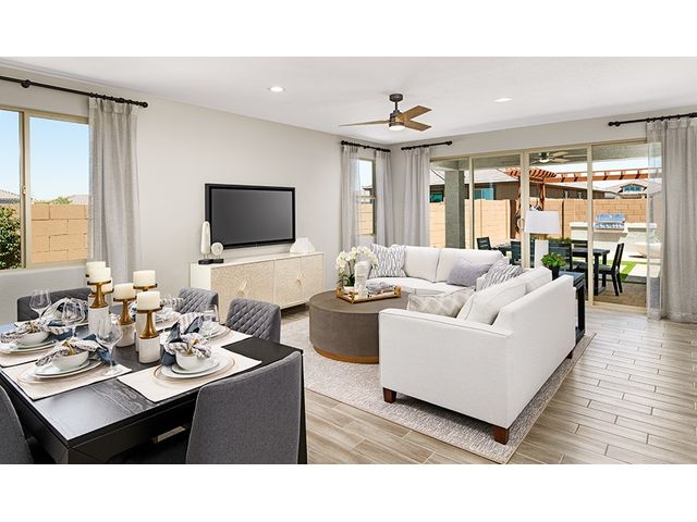 Welcome to this stunning Slate home, ready for quick move-in! Included features: a covered entry; an open great room overlooking a covered patio; a well-appointed kitchen boasting a center island, a walk-in pantry, and an adjacent dining nook; a convenient laundry; an elegant primary suite showcasing a generous walk-in closet and a private bath with double sinks, a shower, and a soaking tub; and three additional bedrooms, including one with an attached bath.