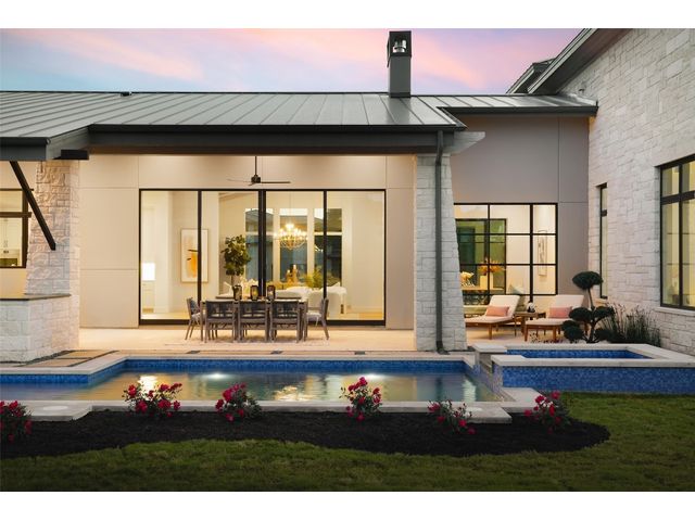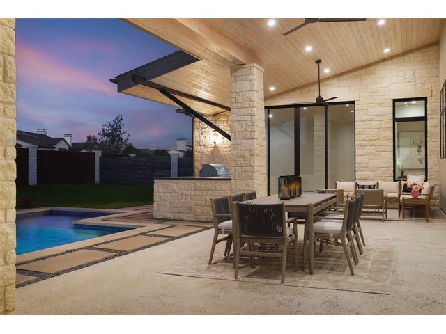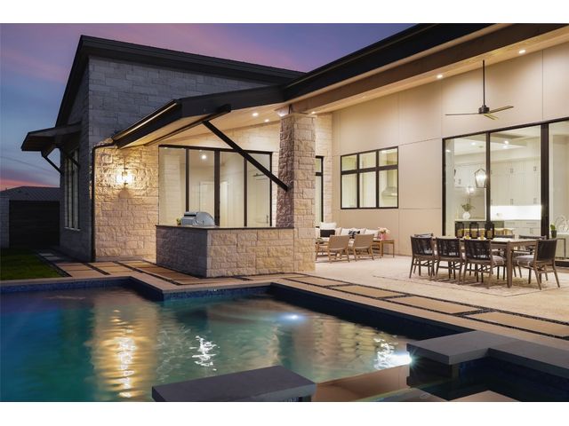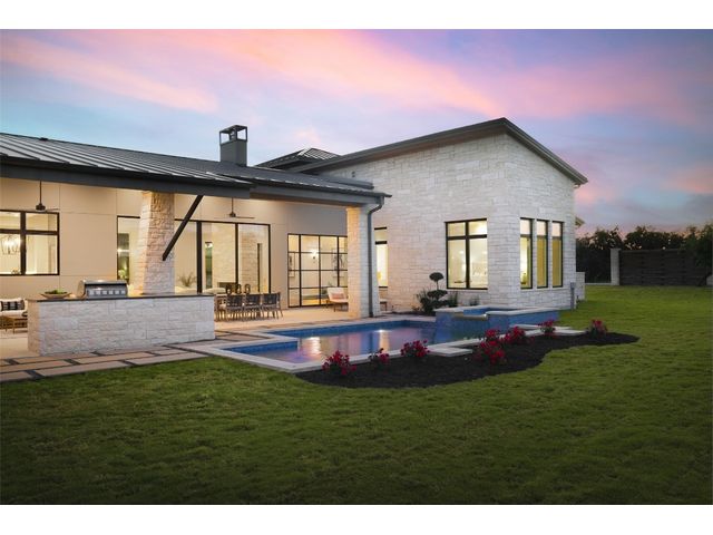SELLER TO CONTRIBUTE TO BUYER CLOSING COSTS....MOVE-IN READY NEW CONSTRUCTION. Introducing Villa Madrone, a luxury 4-bedroom + media + study, single-story residence in Madrone Canyon crafted by AMES Design Build. With 18' ceilings, a two-story double-sided stone fireplace, and a modern entrance, this home embodies contemporary design. The open concept kitchen connects seamlessly to the living and dining areas, surrounded by natural light from 10' glass doors. Wood beams add warmth, while art niches showcase elegance. The owner's suite, on the left side for privacy, includes a wellness room, dual closets, and separate vanities. The designated office features inspiring two-story ceilings with wood beams. A 4-car garage offers space for car enthusiasts, with an option for a personalized his and hers area. Entertain effortlessly with a media room, outdoor kitchen, and pass-through window. Additional features include oversized pantry, Butler Pantry, double sinks, 2 dishwashers and a unique super-laundry room. Step outside to a private oasis with pool, hot tub, and outdoor pool bath. Welcome to unparalleled luxury at Villa Madrone...