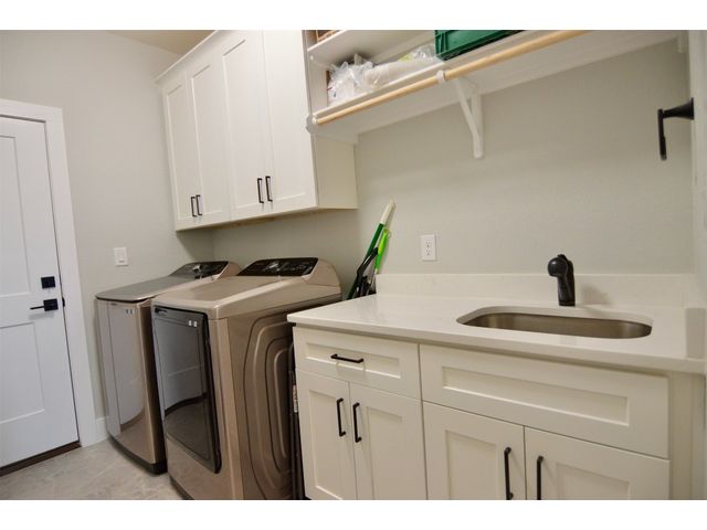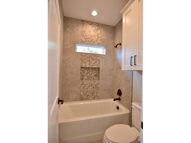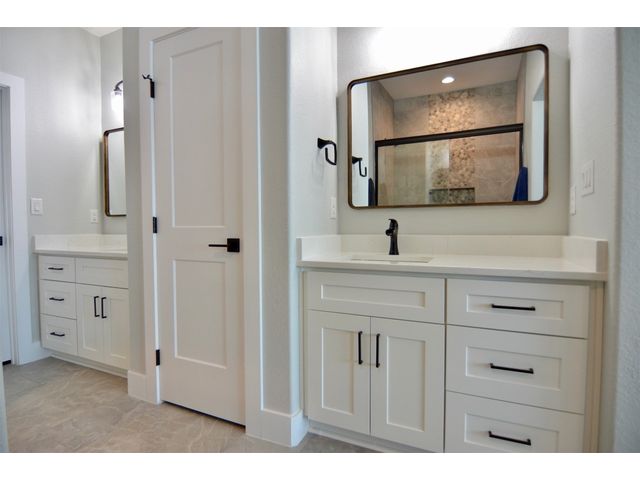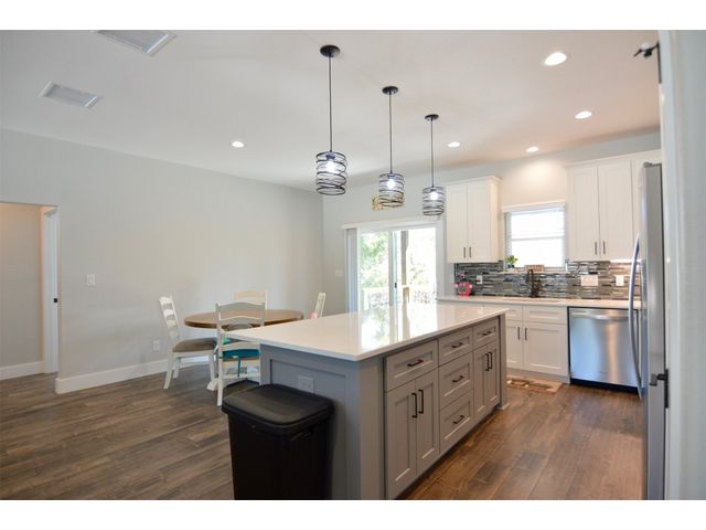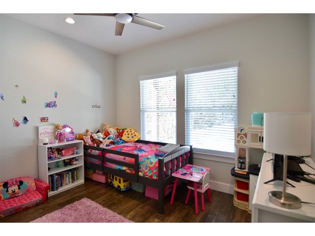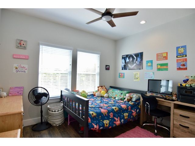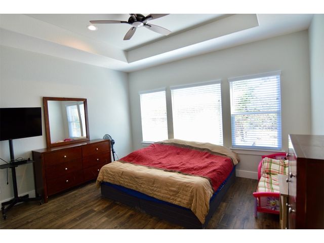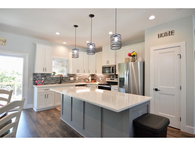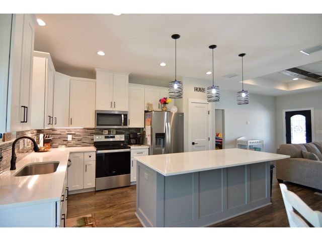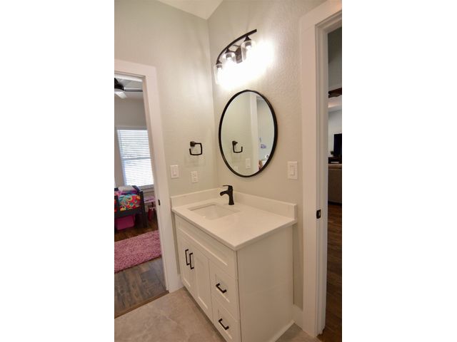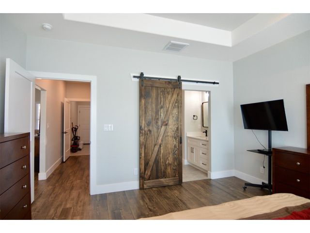 MOTIVATED SELLER! DON'T MISS THIS ONE! This like-new Texas Hill Country Cottages home is an absolute jaw dropper with many custom finishes! Sitting on a lovely .7 acre lot with a private back yard in the highly desired community of Rancho Del Lago; this 1552 sq ft, 3 bed/2 bath/2 car garage home includes custom finishes and upgrades galore! Quartz countertops throughout, custom tile, wood-look plank flooring, solid wood cabinetry with soft-close doors & drawers, full stainless Whirlpool appliance package, upgraded plumbing & electrical fixtures, upgraded insulation and more! The already high 9 ft ceilings throughout bump to 10 ft in the master bedroom, and living room, and living room boasts wood-wrapped beams. Large sliding glass doors lead you to a huge covered back patio with a stone-faced, propane-starter fireplace, enabling you to enjoy a peaceful and private back yard experience.