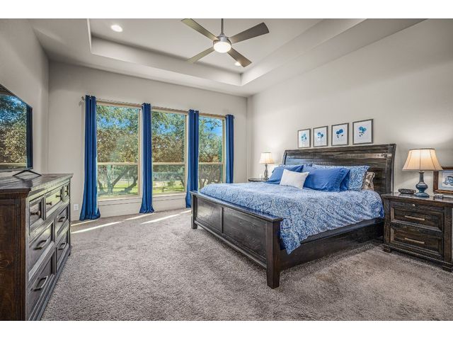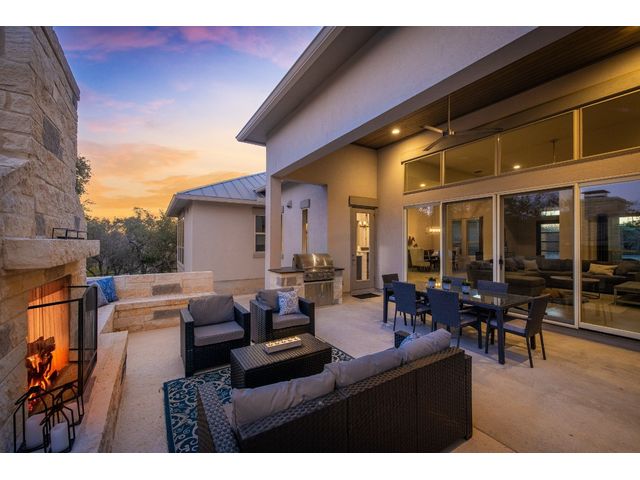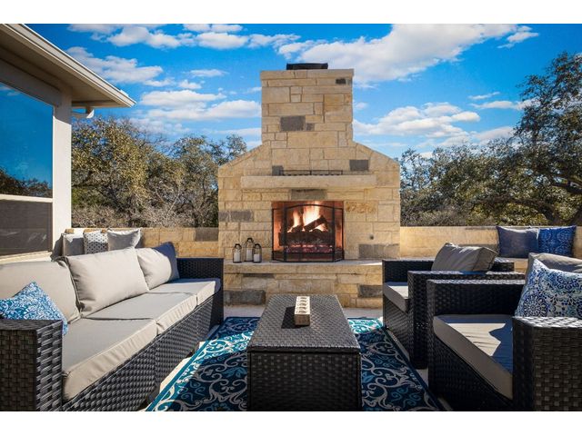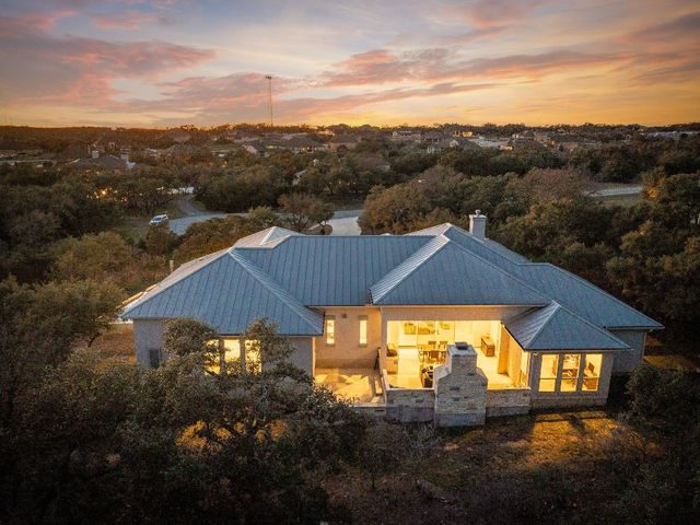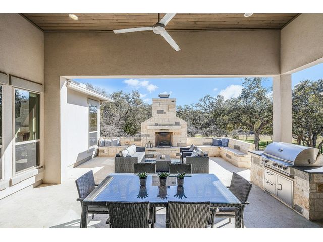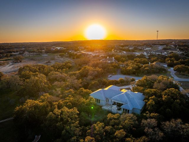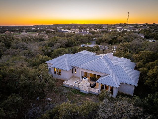 Discover 3,595 square feet of luxury in this 4 bedroom, 3.5 bath home located in the amenity-rich Vintage Oaks community.This custom home offers a combination of elegance,functionality, and outdoor beauty.Upon entering your senses are immediately captivated by the expansive openness, accentuated by large windows that invite natural light.The homes chef's kitchen is a culinary masterpiece featuring high-end KitchenAid appliances that promise both efficiency and elegance featuring propane stove, double oven, built-in grill, and a convenient microwave drawer.The kitchen is not just a workspace but a social hub with its large island ready for your family and friends, designed for both practicality and aesthetic appeal.A large walk-in pantry stands ready to accommodate your storage needs, ensuring that every culinary tool and ingredient has its place in this haven of gourmet delight.The master suite is a haven of relaxation,featuring large windows that invite natural light and offer scenic views.The master bath is a luxurious retreat with a spacious layout, complemented by a walk-in closet designed for two.Upgrades abound, and the windows throughout the home frame picturesque views of the large open patio featuring sliding glass doors complete with a comforting fireplace.The backyard is a personal sanctuary, resembling a private park with your own walking trail, fire pit seating area, and picnic table.A second stone fireplace is on the large outdoor patio that you access through a wall of collapsible sliding glass doors.The property is designed for convenience with a large driveway, parking pad, and an oversized garage featuring a separate outside entry.This tranquil oasis nestled within a peaceful private cul-de-sac is adorned with the grace of numerous oak trees, providing a serene backdrop to this exquisite property.With its spacious living areas, chef's kitchen, and inviting outdoor spaces,it's designed for comfort and enjoyment in the picturesque Texas Hill Country.