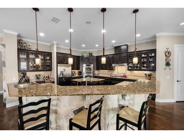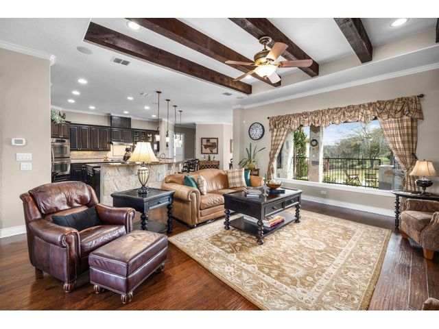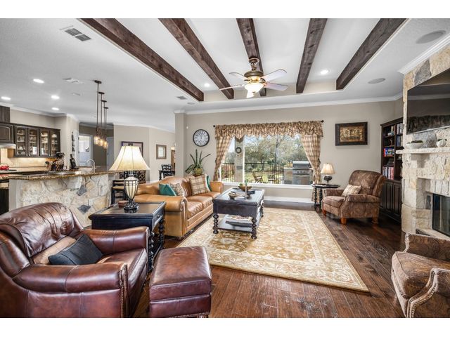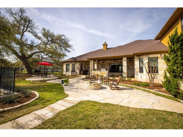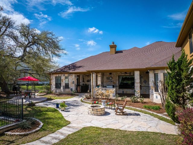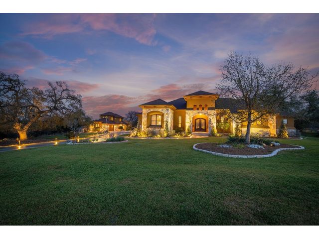 This stunning two story, 5 bedroom and 4 1/2 bath home is located in Vintage Oaks which is known for its scenic beauty and serene surroundings. With almost 5,000 square feet, this is a luxurious and comfortable home perfect for enjoying the natural surroundings. There is a separate guest house adding versatility and privacy for guests or perhaps even as a space for work or hobbies. The 4+ car garage provides plenty of storage and parking space. As you enter in the foyer, the wood and tile floors add warmth and durability to the interior. A chef's kitchen is a fantastic feature for those who enjoy cooking and entertaining. There are 2 outdoor balconies and a screened patio that offer opportunities to enjoy the fresh air and views. The fire pit and outdoor kitchen are great for outdoor gatherings and cooking, especially in the beautiful hill country setting. Mature trees add character and shade to the property, while a hot tub provides relaxation and enjoyment year-round. This home also provides a space for your family pet with a 1,400 sq. ft. fenced dog run! Overall, this home is a wonderful blend of indoor luxury and outdoor charm, perfect for enjoying the hill country lifestyle. SQUARE FOOTAGE OF MAIN HOME IS 3,565 AND THE CASITA IS 1,399