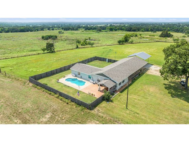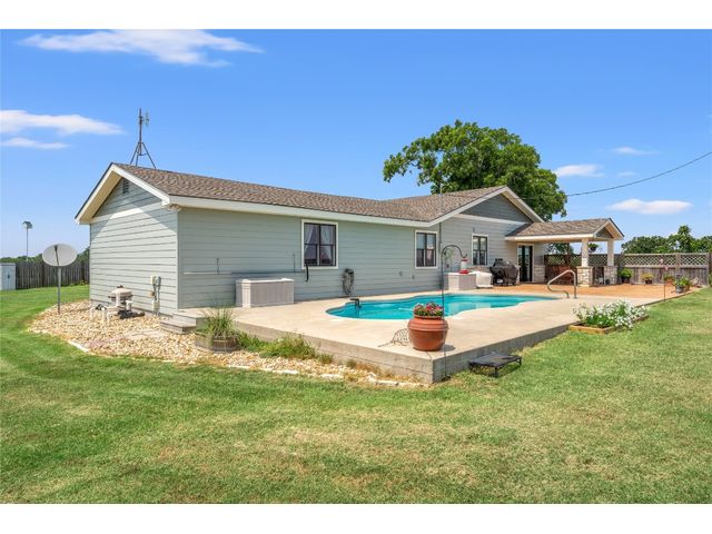 MOTIVATED SELLERS! IS Fishing, an Amazing Home, and Swimming, all on a beautiful 20-acre Horse Property w/gated entry on a paved road your DREAM?? I FOUND it for you! This beautiful 1 story ranch home features a SUPER OPEN FLOOR PLAN w/3 beds, 3 baths, and a HUGE FLEX room. Fresh paint inside and out as well as new floors throughout. NEW 20 Seer RHEEM Heat Pump HVAC and a new dishwasher. OUTDOORS is you will a refreshing easy keep pool w/beautiful patio & large yard. Plenty of room for family gatherings as a permanent home or a weekend/holiday retreat. All of the following outbuildings have water and electricity. The NEW Barn is 64X68 w/2 large stalls, and an insulated tack room. NEW Loafing shed - 20X40 w/2 large stalls. Insulated shop 24X32, Hay barn 24X40, and a NEW Arena 120X190. Hayfield! AG exempt! Huge stocked pond! The pond is stocked with 5 kinds of eatable fish, and plenty of wildlife A MUST SEE!