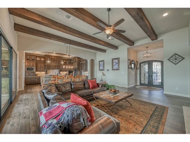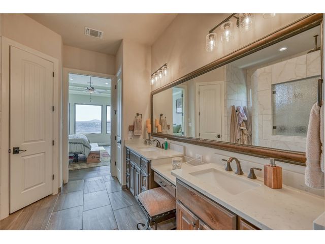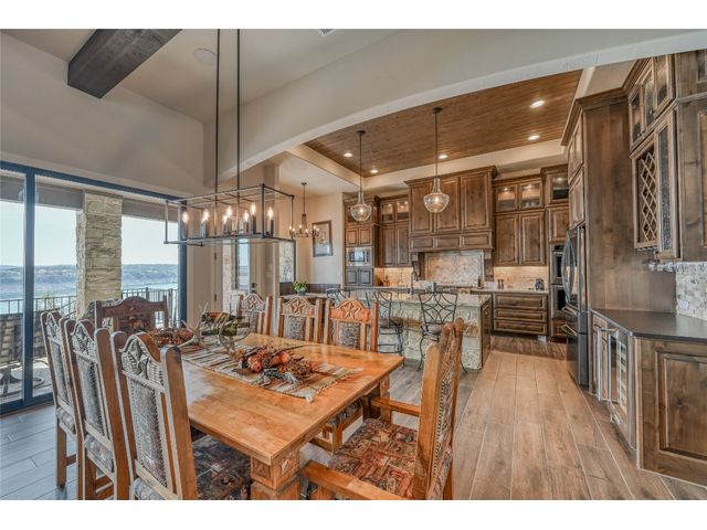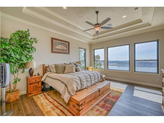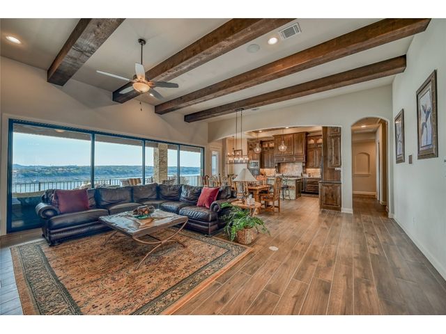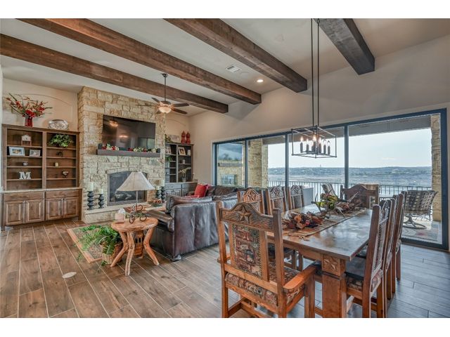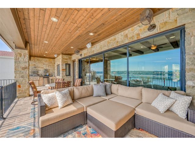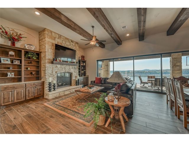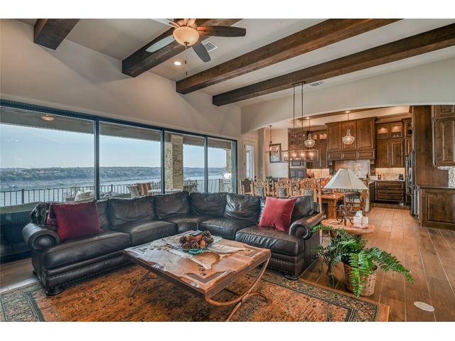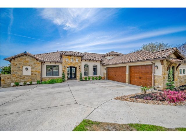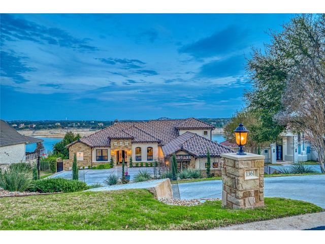 Breathtaking massive Lake Travis views and a beautiful custom Tuscan flavored home built in 2021 is to the market. Located in exclusive Waterford gated subdivision this home has much to offer. Featuring 4 bd and an office downstairs and a game room/bunkroom with full bath upstairs. The kitchen is fully equipped with double ovens, warming oven, 5 burner propane stove, perfect for the gourmet cook. The floorplan is open and free flowing with a wall of sliding doors that open completely to make the patio an extension of the great room. The exterior offers the best of lakeside living with a heated pool and spa, outdoor kitchen with a grill and fireplace. Watercraft storage includes a private boat dock with wave lifts. This property sits on over 11 acres which goes out to approximately the middle of the river bed.