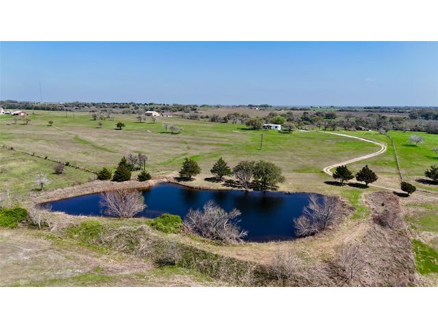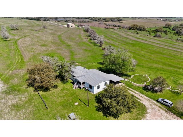 Amazing VIEWS of the rolling countryside including the Praha Catholic Church with elevations from 410-450’. Utilize the 3 BR, 2 BH mobile home that sits on the top of the hill while building your new home or simply use the neat clean home for weekend stays. The large estimated 1 acre pond at the lower southwest corner of the property adds the perfect touch to this picturesque 32 acres. Your choice of access to the property either from Hwy 90, just east of Flatonia by way of deeded easement or access off Baca Loop which is seller owned. The front porch will provide you with beautiful sunsets and views of the large pond and countryside. There is a carport and covered porch off the back of the home. Property holds Ag valuation by Hay. 2 cuts of hay a year estimated 50-60 large bails. Most of the property has perimeter fencing. Flatonia is in the triangle of San Antonio, Houston and Austin. Country living at its best and convenient to the larger city amenities. Minerals Negotiable.