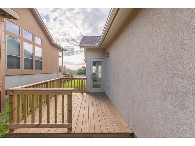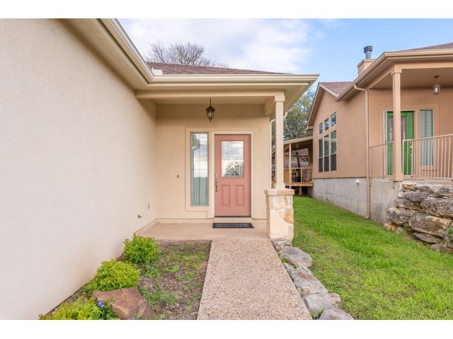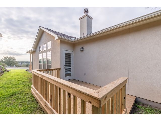 Back on Market. Buyer could not perform, not related to the house or inspection. Single story residence designed for easy comfortable lock and go living. The interior features an open layout with interior spaces flowing effortlessly from one area to the next. Expansive windows for natural light, living area with a wood burning fireplace, kitchen space open to dining and living room, breakfast bar, pantry and an inviting dining area. Newer LVP in the living area along with brand new carpet in both bedrooms and closets. The spacious master suite offers a tray ceiling with a fan and generous closet space. The outdoor space is complete with a deck for relaxing/entertaining with easy access to Canyon Lake. HOA maintains the grounds along with building exterior insurance and maintenance. Perfect space for those looking for a low maintenance lock and go lifestyle with easy access to both Austin and San Antonio. Hill country destinations such as Wimberley, New Braunfels, Gruene, etc all within an easy 15-20 commute.