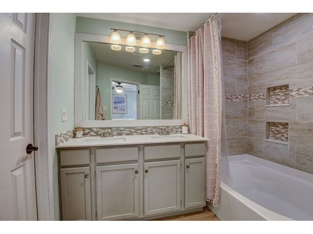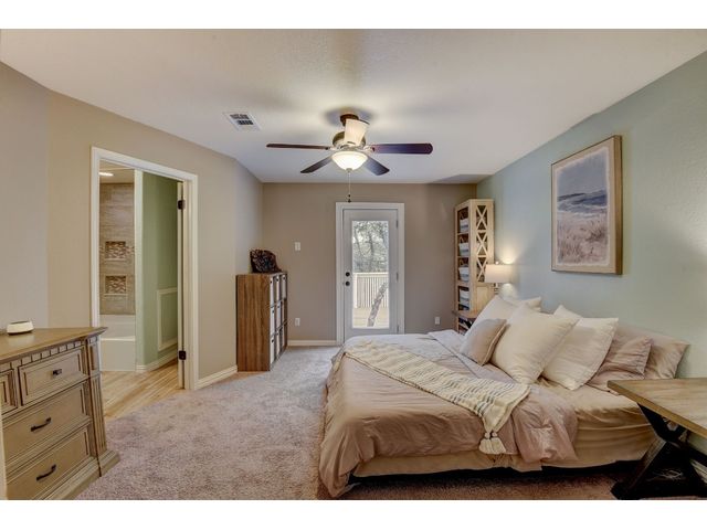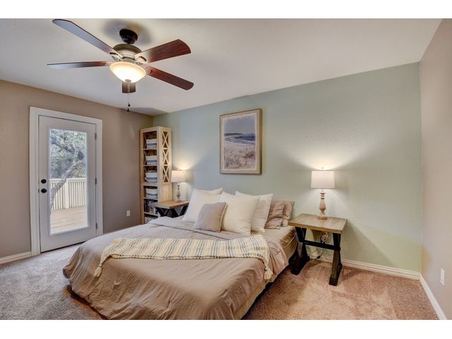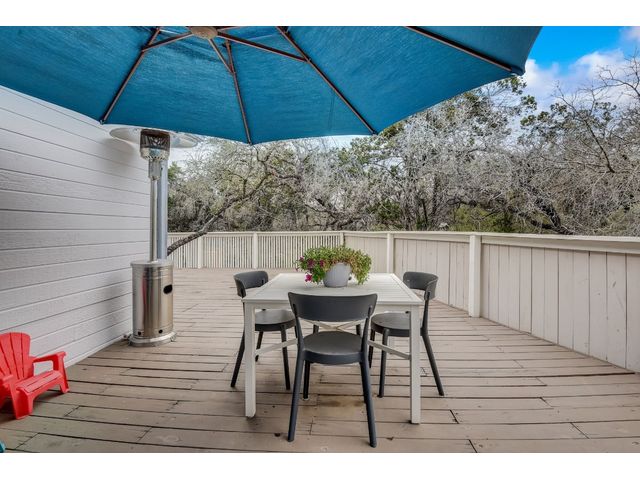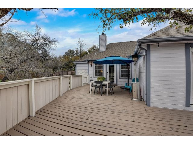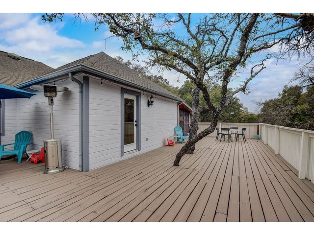 Live the lake life in this beautiful home positioned on a quiet cove within walking distance of Lake Travis. This three bedroom two bath home is cozy and welcoming, with a large living area, dining space that is versatile-currently being used as a kid’s play room, a breakfast area, and bonus upstairs loft. Come back from the lake and enjoy the evening on the oversized rear deck nestled up in the tree tops, cookout, or enjoy a rainy evening in the sunroom. Spacious back and front yards with a canopy of large oak trees shading the front yard- perfect for tree swings. Take a short walk down to the POA’s beautiful tree covered lakefront campgrounds or the basketball court, or a longer walk to Bar K park to stroll along the lake and enjoy all of the large park’s amenities. The current owners have loved it well, adding updated insulation in attic for improved heating/cooling, updated ceiling fans, light fixtures, granite kitchen sink, bedroom carpet, fresh paint, remodeled main bathroom, updated appliances including double oven range, and more. The Lago Vista POA gives access to 9 private lakeside parks with playgrounds, boat ramps, a fishing well, campgrounds, pool, tennis courts, pickleball courts, as well as the POA’s new fitness center at K Oaks right down the street within walking distance or a very short drive if you prefer. LVPOA offers all of these amenities included in annual POA dues which come out to less than $20 a month. This home offers the perfect location to live the lakeside lifestyle and enjoy the outdoor space, with a cozy, updated, and spacious interior.