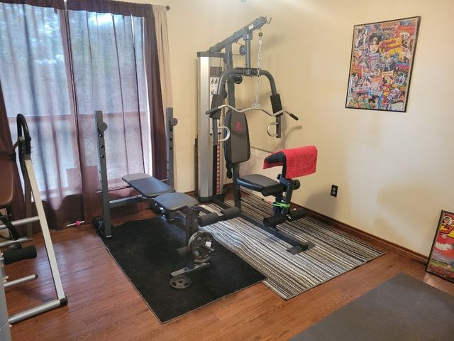 In need of repairs. This home has great potential. It has half circle drive and driveway. The master is on the third floor with a great view of the lake at a distance. the main floor is the living room area with fireplace that also has French doors that open up to back balcony, kitchen and dining room that also has a side balcony, kitchen and half bath. the third floor has outside entrance at the end of staircase, then has 3 bedrooms that 2 of them have doors that open to back yard and porch. Third bedroom has full bath, and full bath in hallway. It is as is. Has great potential. Have a recent appraisal for 500k