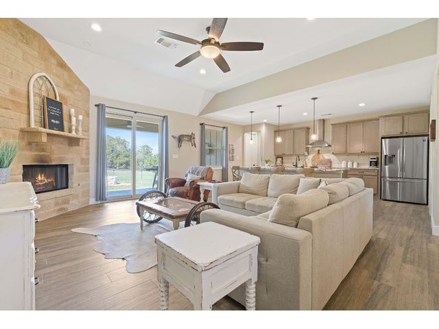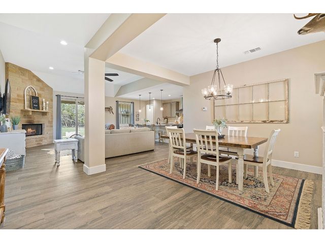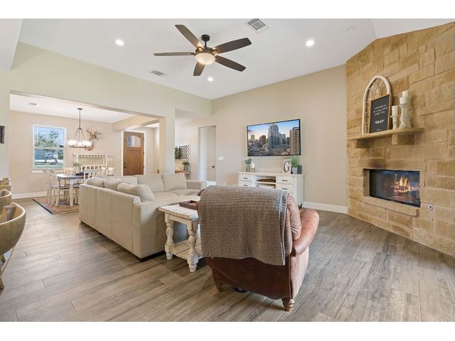 Back on market due to buyers contingency falling through. Home is in immaculate condition -- Welcome to your haven in the heart of the Texas Hill Country! Resting on almost 1 acre backing up to a large ranch, this property offers a lifestyle of serenity and modern luxury. Step inside this custom built masterpiece, where every detail has been thoughtfully designed for comfort and entertaining. The home boasts stunning features such as high ceilings, fireplace, an open kitchen with a grand island, a vast walk-in pantry, and above builder grade stainless-steel appliances. A convenient propane piping system also exists anticipating the future owner's desire for a propane-fueled kitchen or fireplace. Live the ranch lifestyle without leaving the comfort of home! Deer gracefully roam the property every single day. Effortlessly entertain in the backyard with an outdoor TV, custom fire pit, and playscape. No need to worry about storage fees or limited parking options – this residence offers a dedicated and spacious area designed specifically for a boat or RV. Located in the gated Summit North Subdivision, situated in a prime area of Canyon Lake that offers the perfect getaway while remaining conveniently close to shops, groceries, restaurants, multiple boat ramps, and Cranes Mill Marina.
