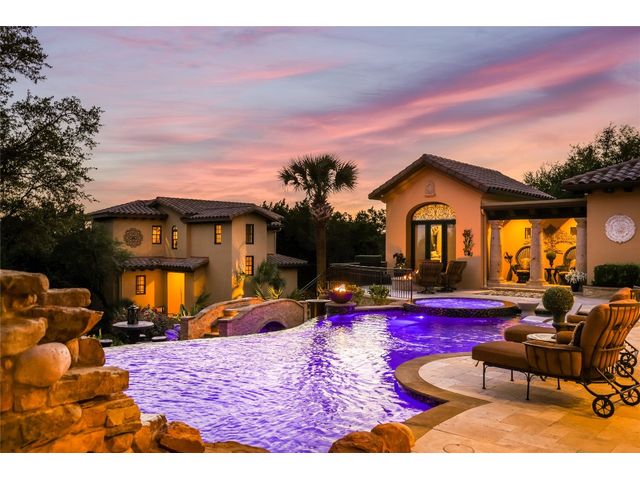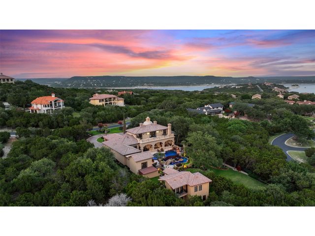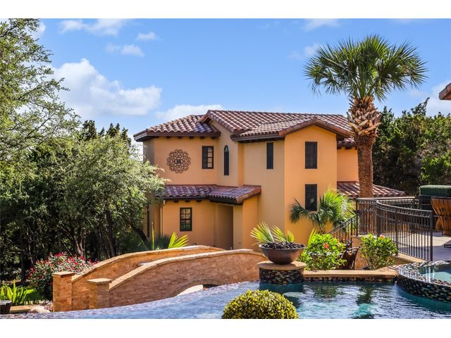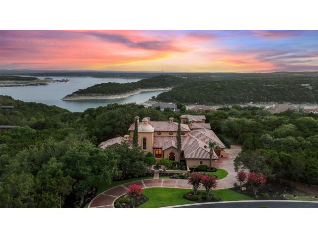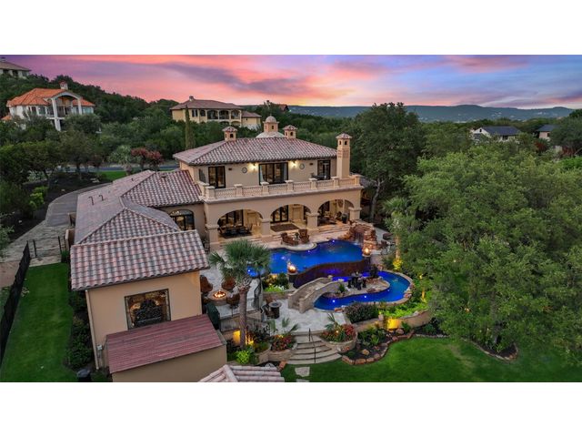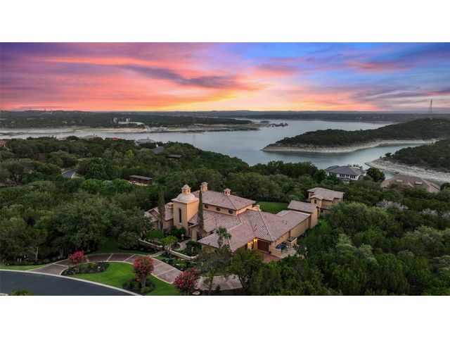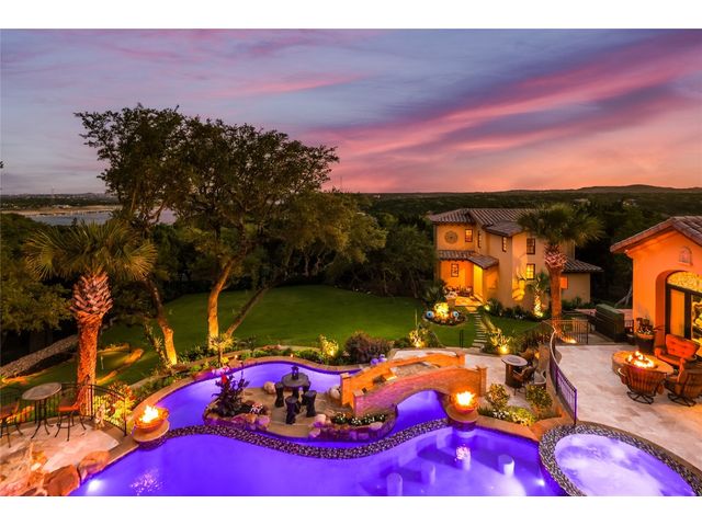 Villa Above The Lake lives like a village rather than a house. A compound consisting of all of the luxuries to entertain a grand lifestyle. The current owners have added considerable value & character to the estate. An additional lot was added doubling the size of the property. Not to mention demolishing the original pool to make way for its current pool "worthy of a luxury resort". The new pool was featured in season 6, episode 6 of Pool Kings. California pools came in and constructed a landmark pool, actually 2 pools. Upper-level infinity-edge equipped with an enormous grotto, tanning deck, and bar stools overlooking Lake Travis highlighted by fire torches and a fire pit. A lower pool is designed as a lazy river with a bridge to the center island. With a commanding presence and timeless design, the unique style and beauty remain unmatched and highly desirable. Surroundings merge seamlessly with the Spanish Villa. Architectural detail demands attention complemented by the staple tower with a reclaimed brick rotunda. A wonderful balance of Spanish designs, as sharp lines heighten the architecture and provide unparalleled elegance. No detail was sacrificed, with superior craftsmanship found in the interior stone, hand-carved columns, and brick-lined groin vault ceilings; quality is evident. The Hollows not only offers a community but also a lifestyle. One of the finest marinas on Lake Travis, resort beach club with restaurant, world-class pool, parks, & hiking trails. A community commonly accessed by golf carts, bikes, & pedestrian accessibility. The location sets the tone for a resort vacation feeling. Lago Vista is one of Austin's most scenic areas, Surrounded by rolling hills & miles of Lake Travis shoreline.