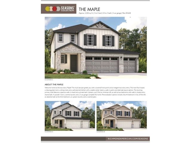 Explore this must-see Maple home, ready for quick move-in. Included features: a welcoming covered porch; a well-appointed kitchen offering 42" cabinets, quartz countertops, a walk-in pantry and a center island; an open dining area; a spacious great room; a lavish primary suite showcasing a generous walk-in closet and a private bath; an airy loft; a storage area; a convenient laundry; a covered patio and a 3-car garage.