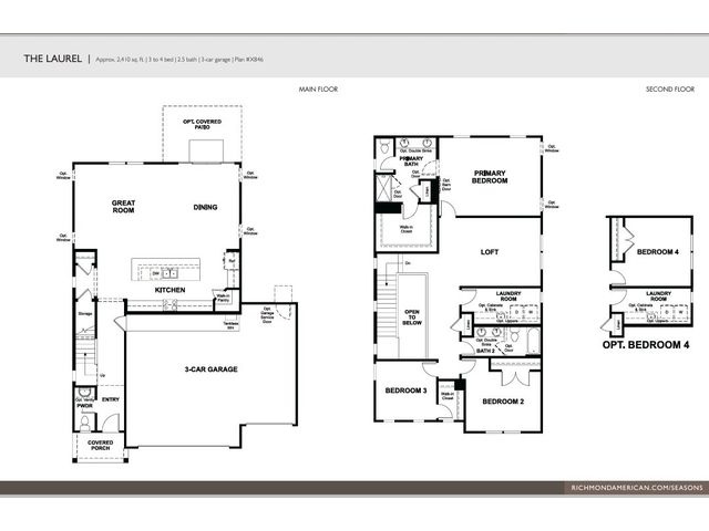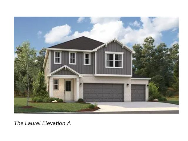 The Laurel plan makes a great first impression with its charming covered entry. The main floor offers open dining and great rooms and a well-appointed kitchen with an immense center island. Upstairs, discover a central laundry room, a versatile loft, two generous bedrooms with a shared bath and an elegant primary suite boasting a private bath and expansive walk-in closet.