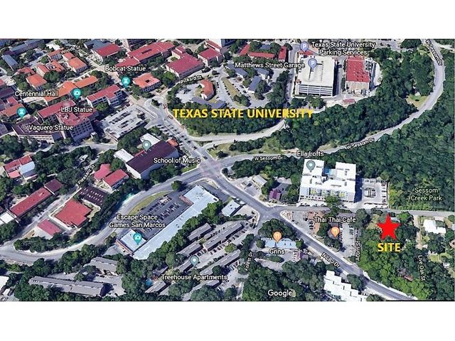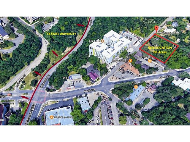 A Prime corner lot, this infill redevelopment opportunity is within walking distance of Texas State University. Zoned Legacy Mixed Use, this .8 acre lot allows for a wide range of redevelopment options including, multi-family, townhomes, offices, convenience store, commercial, retail, etc. Up to 4 stories can be built on the property. There is currently an 8" water line and a 12" wastewater line running along the property line on Chestnut Street. The house is currently rented for $2,500/month. Please refer to the San Marcos Land Development Code Under Chapter 9 for the full range of development possibilities. Located in an Opportunity Zone. Buyers to do their own due diligence to verify future development.