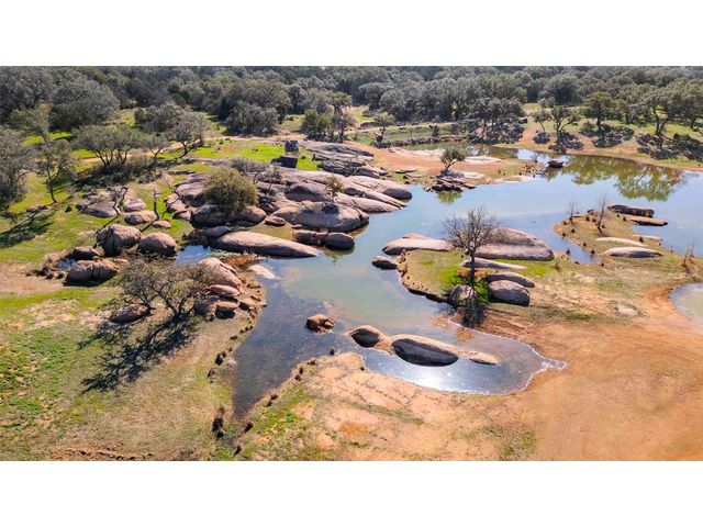 Granite Lake is an extraordinary 12.9-acre property nestled in the picturesque Highland Lakes region of the Texas Hill Country. Located just 2 miles from FM 1431 in Kingsland, this crown jewel boasts a pristine, private granite lake, direct canal access on the Colorado River (Lake LBJ), abundant wildlife, spring bluebonnets, and gorgeous surrounding ecosystem. Four tiny homes, a small office building, and all furnishings are included, providing an immediate income stream as vacation rentals. The property is comprised of three parcels with approximately 1,050 feet of frontage on RR 2545 and two neighborhood road entrances. The largest 11.7-acre parcel is unrestricted. There is a 200-foot water well with a softener and UV sterilizer installed. Water to maintain the private lake is currently pumped from the Colorado River. LCRA has already agreed to allow the new owner to initiate a new permit. Electricity is in place, along with wastewater provided by Kingsland Municipal Utility District. Whether you are looking for a private retreat, a development venture, or an investment opportunity, Granite Lake offers a unique canvas to realize your vision.
