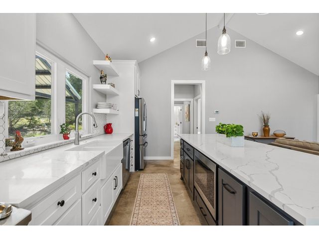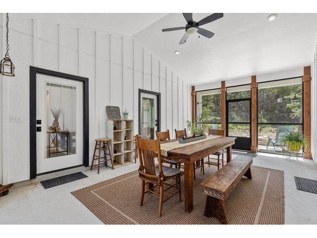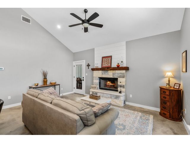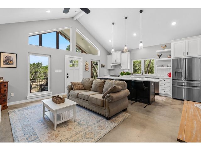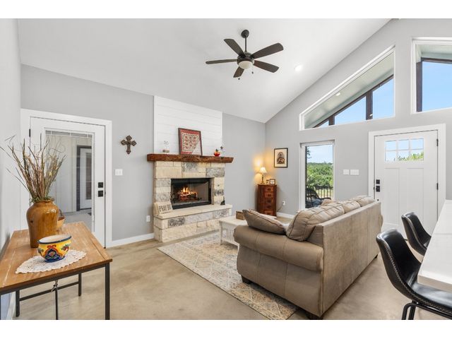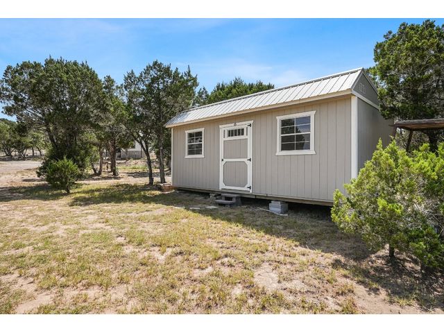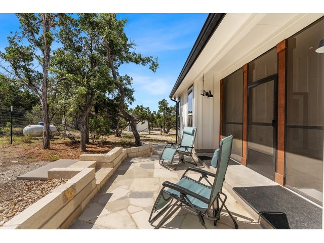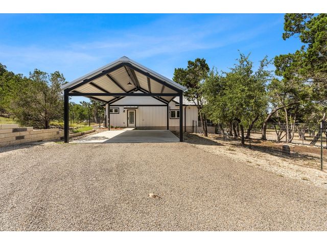 Welcome to 631 Lakeside Dr. This Dog Trot Style home was built in 2021 and boasts 7.10 acres of scenic land, nestled in a quiet neighborhood with abundant wildlife. Enjoy captivating sunset views from the front of the house, while the screened breezeway and porches create seamless indoor-outdoor living. Outside, you'll find a 2-car carport with electrical outlets and lights, a NEW storage building (12 X 24) with extra-wide door and windows, and a NEW well house (8 X 12) with insulation and electricity. The property features a water well, septic system, and a bridge over a wet weather creek. Walking paths and fenced yards make it perfect for nature lovers and pet owners. Inside, the approx. 1404 sq. ft. living space boasts stained concrete floors (no carpet), a wood-burning fireplace with gas starter, and a unique hand-crafted mesquite mantel. The kitchen is a chef's delight, featuring a 9' island with under-counter microwave, gas stove/oven/griddle, and custom cabinetry with soft-close drawers. Additional perks include a walk-in pantry, tankless water heater, and all NEW high-end kitchen appliances. The bedrooms offer oversized spaces with large walk-in closets, while both bathrooms boast custom tile work and deep soaking tubs. Vaulted ceilings in the main living area add to the sense of space and comfort. The property’s lightly restricted zoning allows for the possibility of adding more structures and turning this into a short-term rental, unlocking even more potential for this already extraordinary home and property.