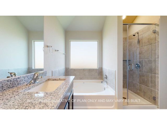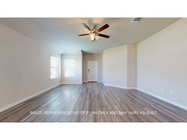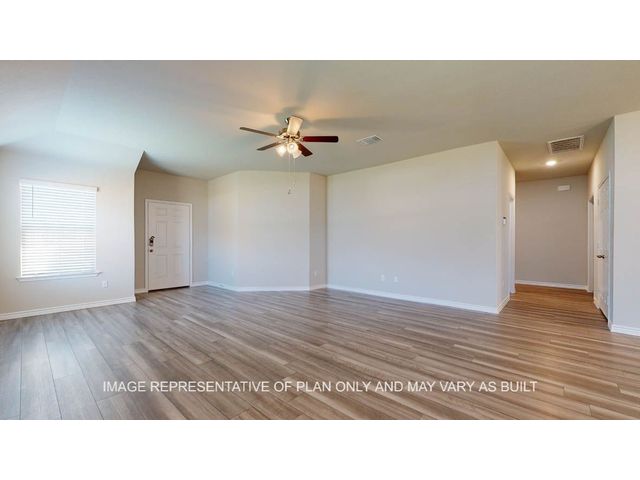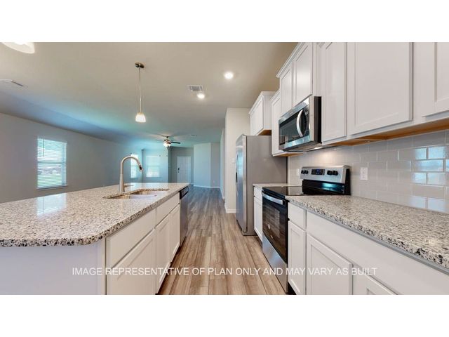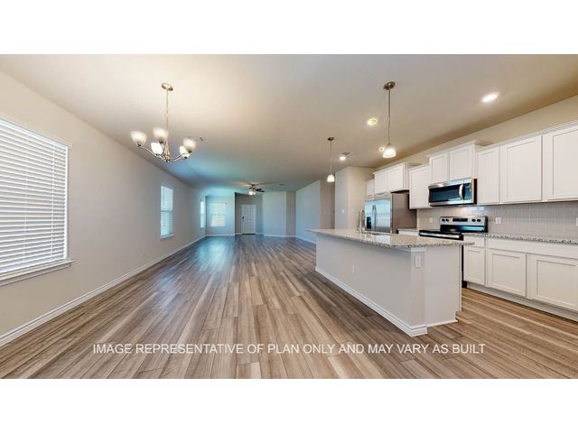 The Elmwood is a single-story, 2022 approximate square foot home featuring 4 bedroooms & 2 bathrooms. The beautiful kitchen includes granite countertops, stainless steel appliances. The Bedroom 1 suite is located off the family room and it includes a large walk-in closet and a relaxing spa-like bathroom with a double vanity and spacious walk-in closet with plenty of room for storage. You'll enjoy added security in your new DR Horton home with our Home is Connected features. Using one central hub that talks to all the devices in your home, you can control the lights, thermostat and locks, all from your cellular device. DR Horton also includes an AMazon Echo Dot to make voice activation a reality in your new Smart Home. Available features listed on select homes only. With DR Horton's simple buying process and ten-year limited warranty, there's no reason to wait. (Prices, plans, dimensions, specifications, features, incentives, and availability are subject to change without notice obligation.)