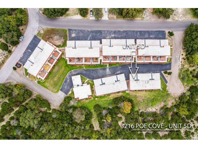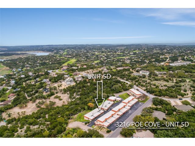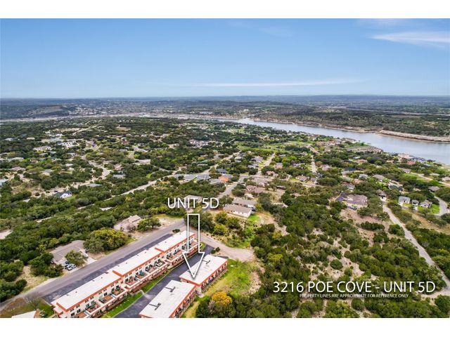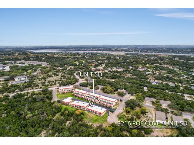 3216 Poe Cv #5D - Panoramic views of Lake Travis and the lush Hill Country will take your breath away. Enjoy this end unit 2 bedroom, 2 full bath home as your primary residence, vacation home, or an investment. The home offers an open floor plan, updated kitchen and baths, large deck to view the lake, and solid surface flooring throughout. Also enjoy 2 assigned covered parking spaces and a stackable washer and dryer.