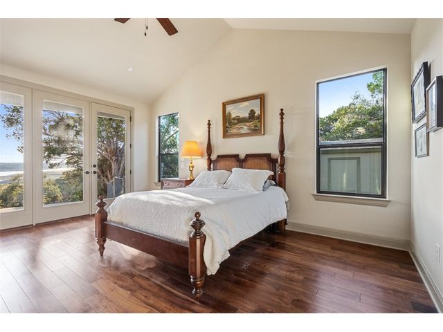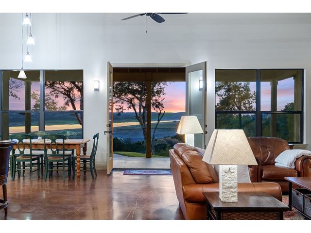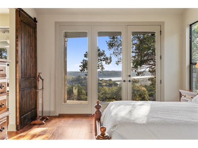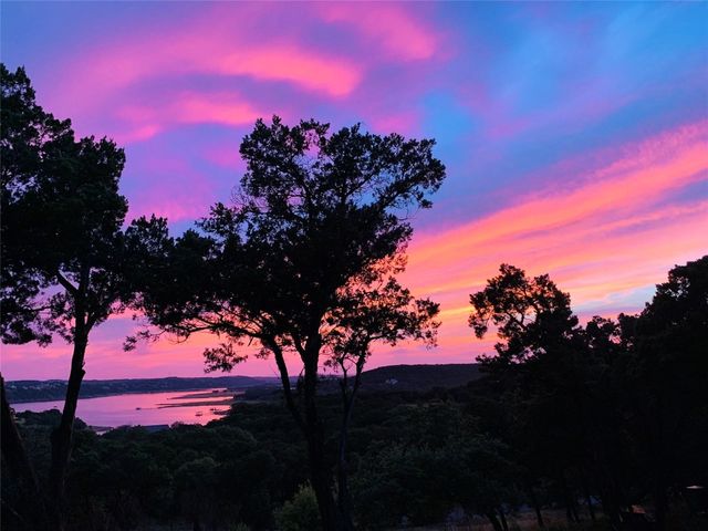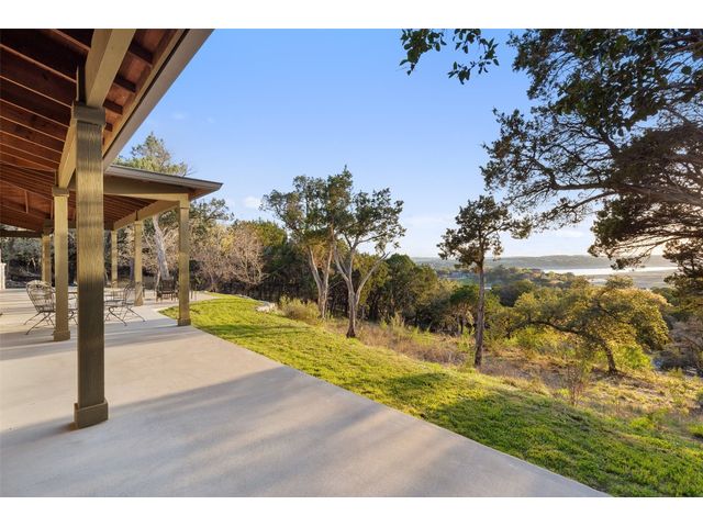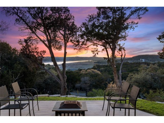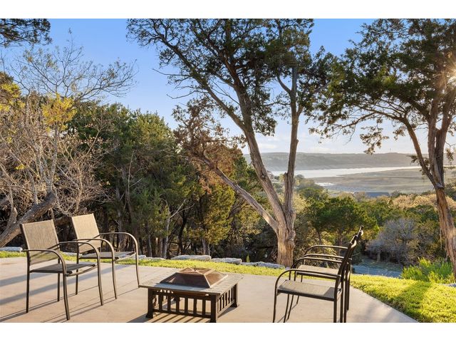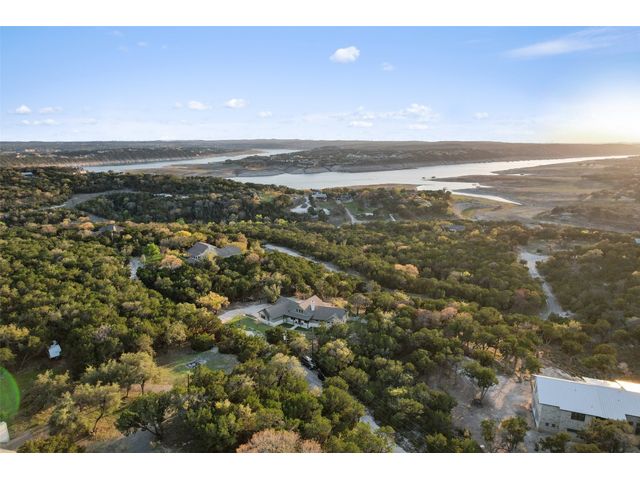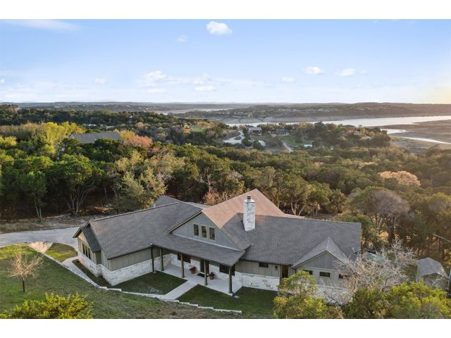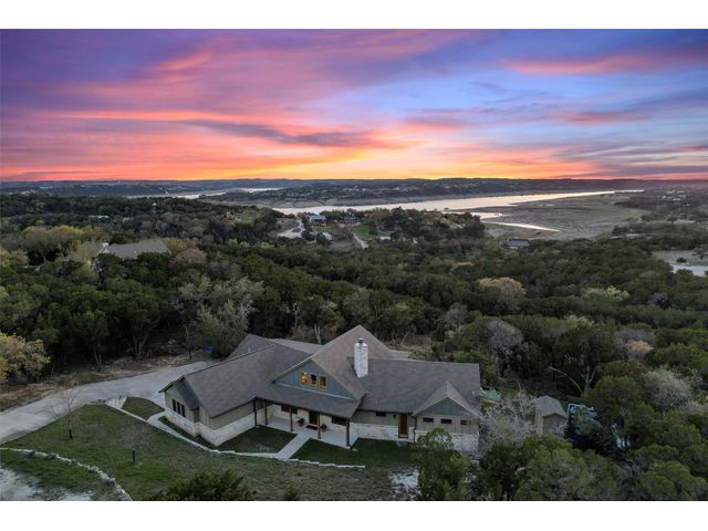 Motivated Seller! Bring all Offers! Nestled in the privately-gated lake community of Old Farm, this beautiful custom home offers a perfect blend of quiet private comfort and serene surroundings. Built in 2016, this meticulously crafted residence features four bedrooms, 2.5 bathrooms on a private 1-acre lot surrounded by several additional acres of forested land providing an abundance of space, privacy and tranquility. Facing West, the home offers an expansive covered porch, a broad view of the lake and distant hills with incredible daily sunsets and early morning moonsets. The spacious interior is bathed in natural light, creating an inviting atmosphere. The layout is thoughtfully designed, with each room offering tall or vaulted ceilings, large doors and breathtaking views of Lake Travis. From each room you'll be treated to panoramic scenes of the picturesque landscape and wildlife that surround this attractive residence. The home features granite countertops and slate tile, a 42-inch Isokern masonry fireplace, chef’s kitchen with stainless steel appliances, separate wet bar with wine fridge, well water with a 3,000 gallon reservoir, rainwater collection with 2,500 gallon storage, tankless hot water heater and a 1,000 gallon propane tank. Residents of Old Farm enjoy exclusive access to a private boat ramp and park, and convenient entry points to a deepwater swimming cove. The lure of the lake is only steps away, making it easy to indulge in water activities or simply relax by the water's edge. This home is located close to Lago Vista High School and the proximity to Cedar Park and North Austin is a short 20-minute drive, ensuring easy access to a wealth of shopping, dining, and entertainment options. There are no city taxes, adding to its appeal, while Travis County fire and emergency services are five minutes away. Embrace the epitome of lakeside living in this elegant home, where the perfect blend of comfort, style, privacy and natural beauty awaits.