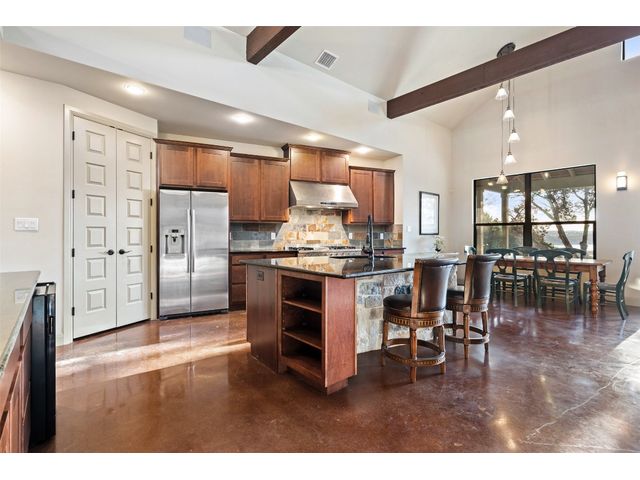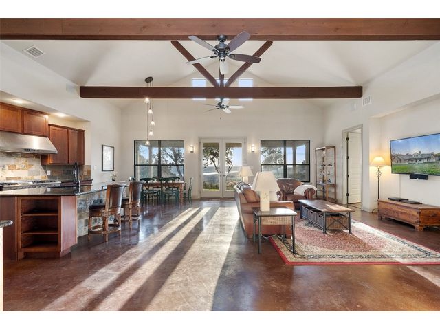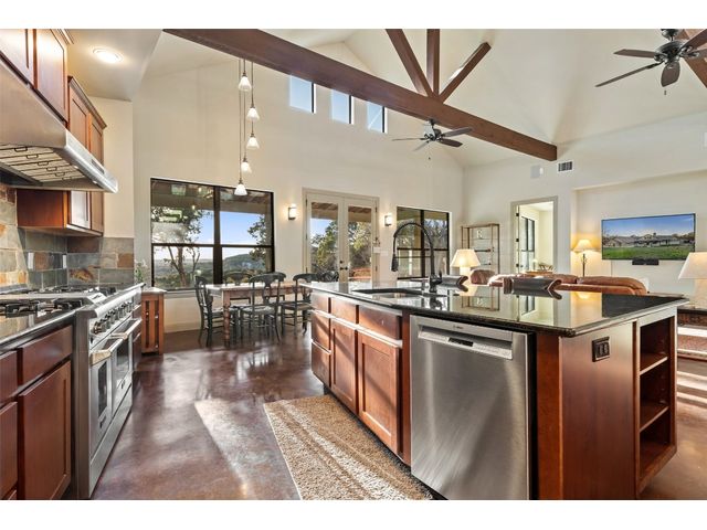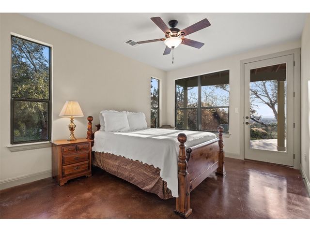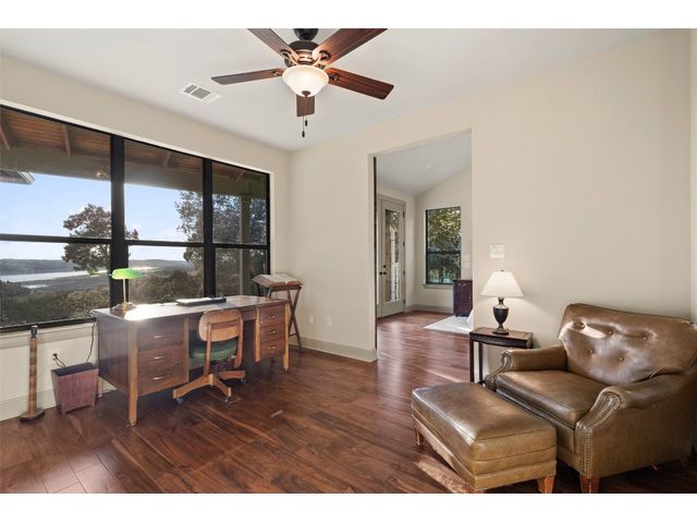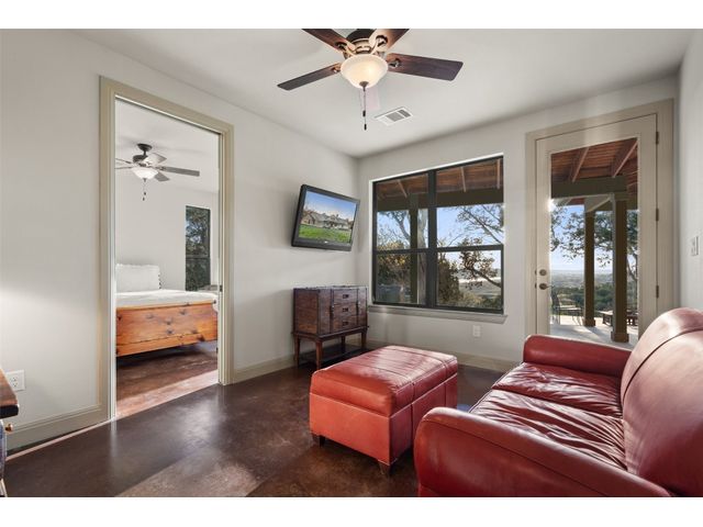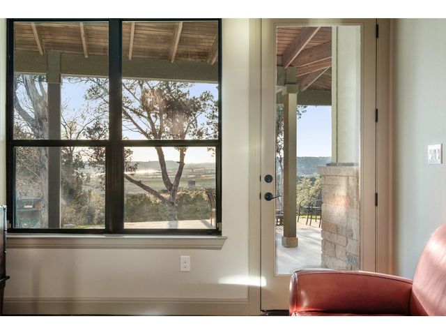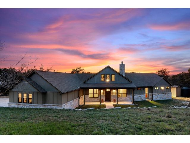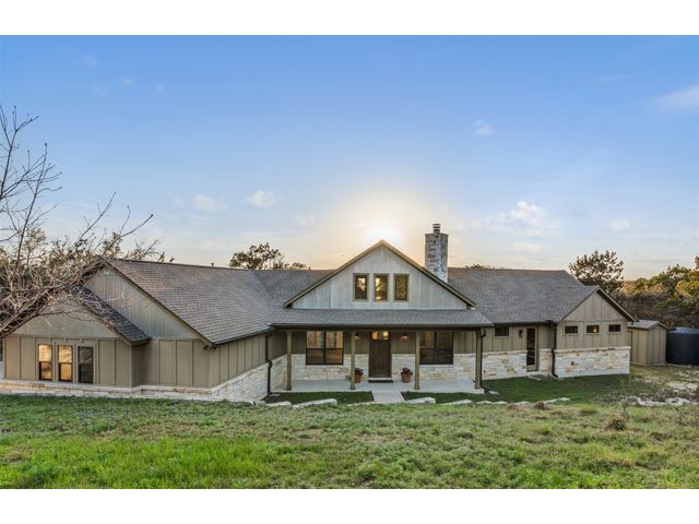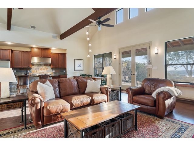 Motivated Seller! Bring all Offers! Nestled in the privately-gated lake community of Old Farm, this beautiful custom home offers a perfect blend of quiet private comfort and serene surroundings. Built in 2016, this meticulously crafted residence features four bedrooms, 2.5 bathrooms on a private 1-acre lot surrounded by several additional acres of forested land providing an abundance of space, privacy and tranquility. Facing West, the home offers an expansive covered porch, a broad view of the lake and distant hills with incredible daily sunsets and early morning moonsets. The spacious interior is bathed in natural light, creating an inviting atmosphere. The layout is thoughtfully designed, with each room offering tall or vaulted ceilings, large doors and breathtaking views of Lake Travis. From each room you'll be treated to panoramic scenes of the picturesque landscape and wildlife that surround this attractive residence. The home features granite countertops and slate tile, a 42-inch Isokern masonry fireplace, chef’s kitchen with stainless steel appliances, separate wet bar with wine fridge, well water with a 3,000 gallon reservoir, rainwater collection with 2,500 gallon storage, tankless hot water heater and a 1,000 gallon propane tank. Residents of Old Farm enjoy exclusive access to a private boat ramp and park, and convenient entry points to a deepwater swimming cove. The lure of the lake is only steps away, making it easy to indulge in water activities or simply relax by the water's edge. This home is located close to Lago Vista High School and the proximity to Cedar Park and North Austin is a short 20-minute drive, ensuring easy access to a wealth of shopping, dining, and entertainment options. There are no city taxes, adding to its appeal, while Travis County fire and emergency services are five minutes away. Embrace the epitome of lakeside living in this elegant home, where the perfect blend of comfort, style, privacy and natural beauty awaits.