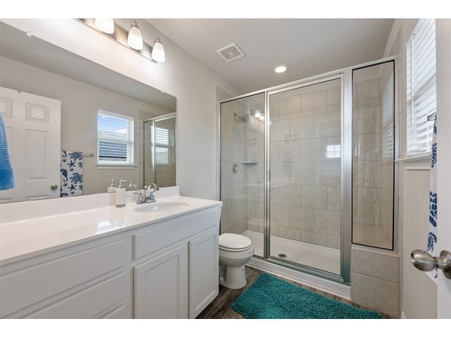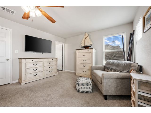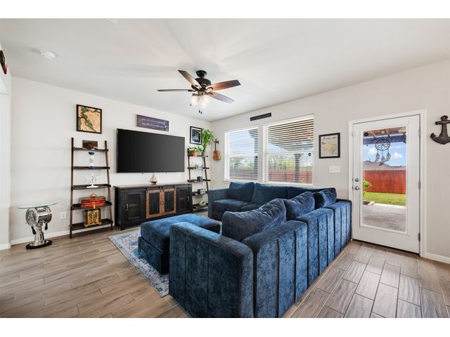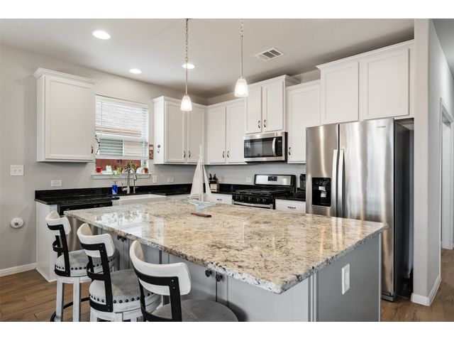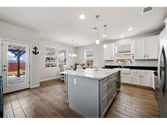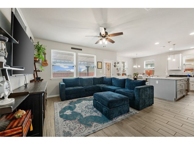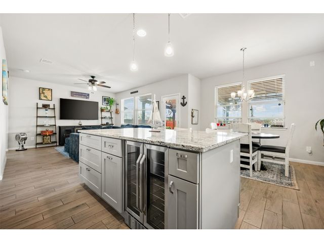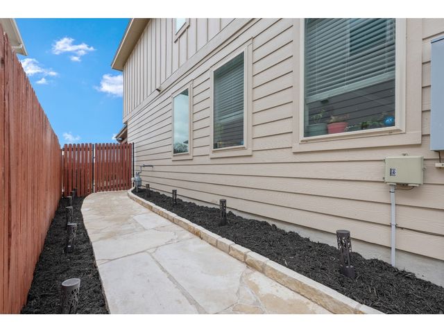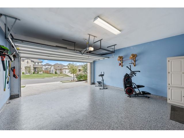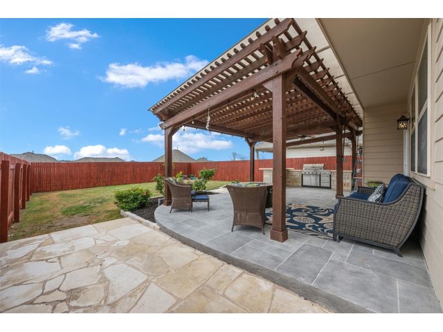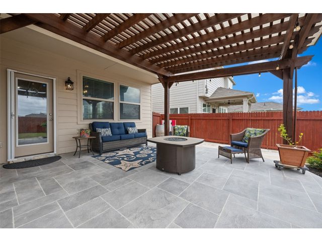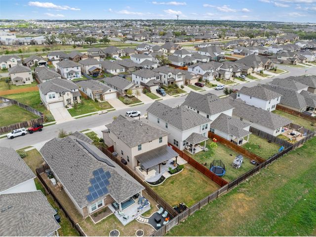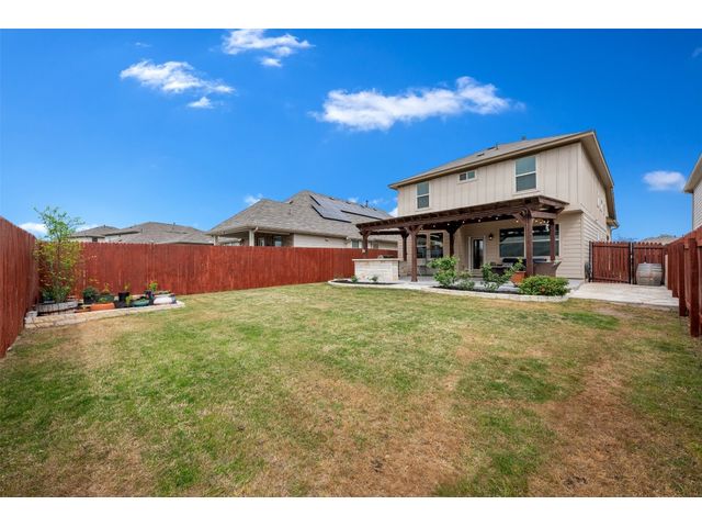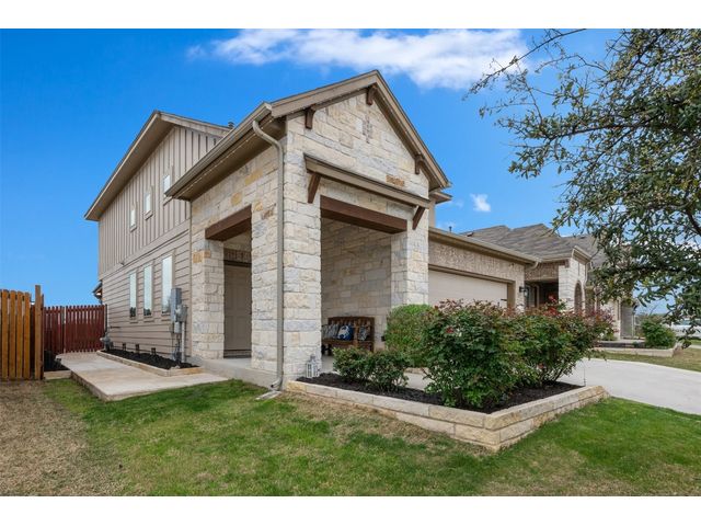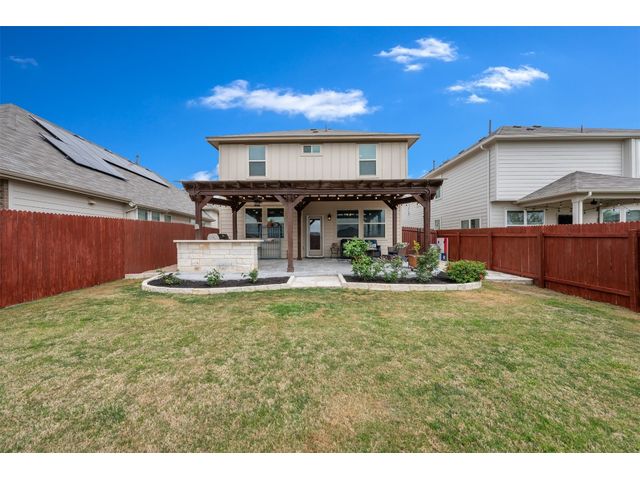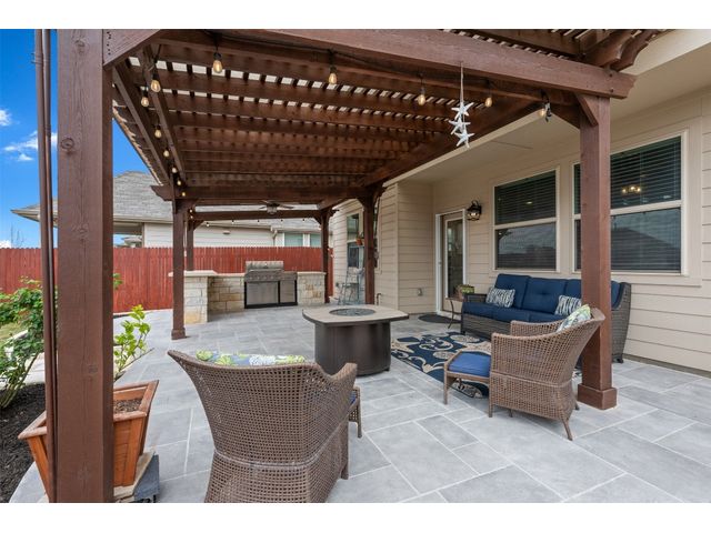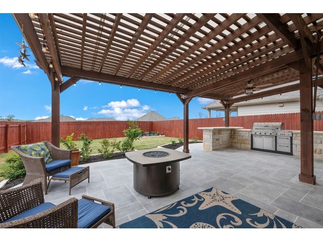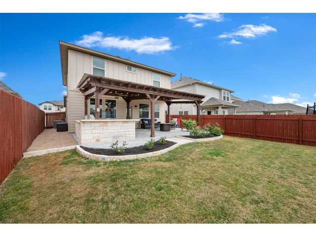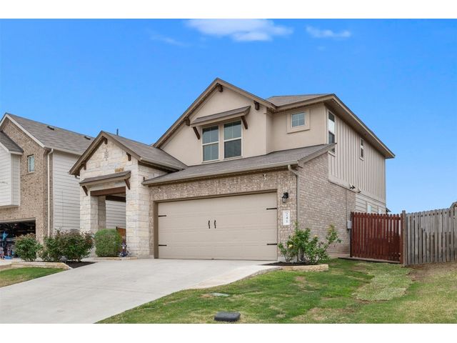 Step into luxury in this updated home nestled in the desirable Larkspur subdivision of Leander! This modern gem features three bedrooms, two full baths upstairs, and one half bath downstairs for convenience. Revel in the fully equipped covered back patio with a built-in gas grill, perfect for entertaining. The kitchen boasts an extra-large center island and a built-in wine fridge. The finished garage beautifully showcases your car while still providing storage space with the added storage area in the back and the overhead racks. The home has permanent outdoor seasonal lights that can be enjoyed year-round. This home already has the updates you want. All you need to do is move in.