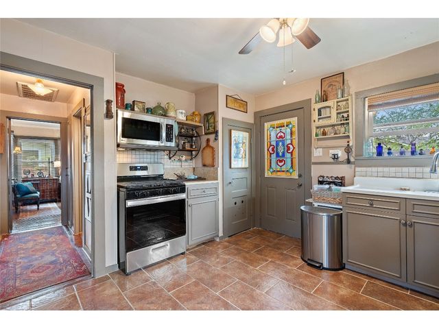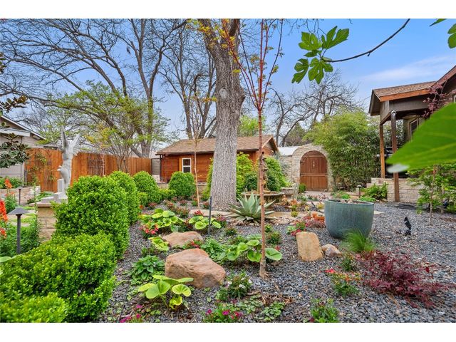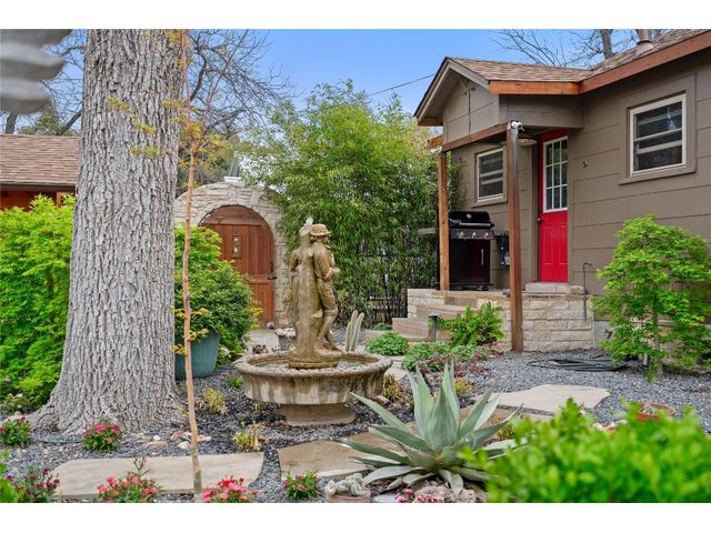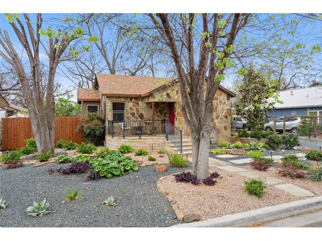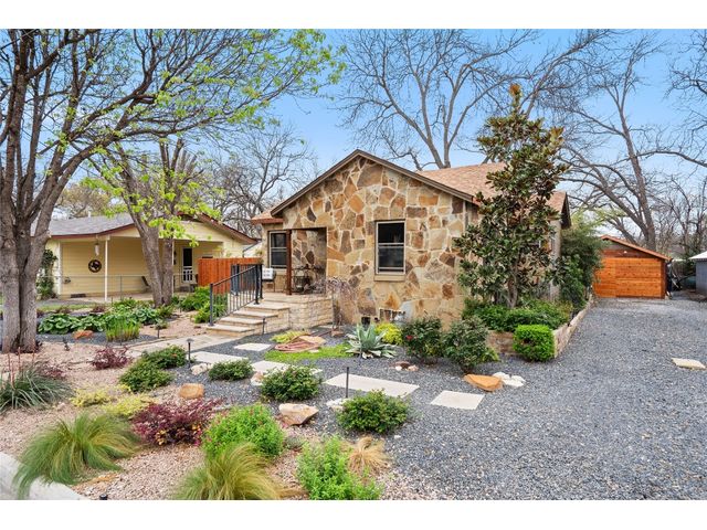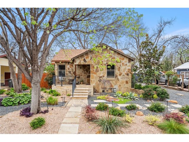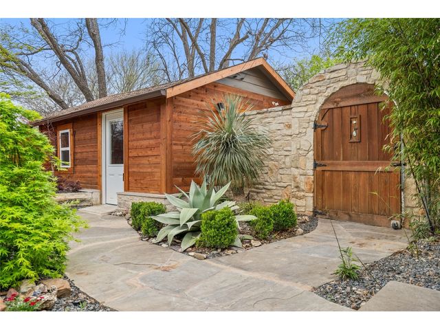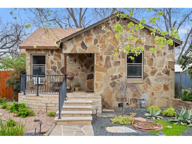 Unique stone cottage & studio in Old Town Georgetown, 6 blocks from The Most Beautiful Town Square in Texas. This property has beautiful stonework inside & out, custom stained-glass windows and the most beautiful landscape in all of Georgetown! The 2019-2024 renovations include: original house is 756 sq ft with a 320 sq ft detached studio/office/workout room studio with HVAC, Lueders floor & cedar walls; French drain & pump in backyard; new plumbing in house & studio; updates in kitchen and bathroom; flagstone front porch patio;… The front and backyards are beautifully landscaped with lighting on timers, backyard feels like a botanical center and still has plenty of room to entertain amidst an antique fountain, sculptures, a custom fire pit and beautiful shade trees. Enjoy all that downtown Georgetown has to offer: restaurants, shopping, wineries, farmers markets, art & music. Southwestern University, San Gabriel River Park are within block as well. Easy access to IH35 & Toll130.