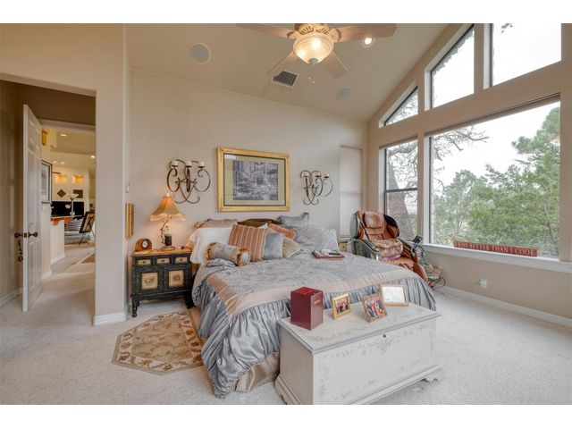 Get a stylish custom home and an amazing view! First time on the market for this home on the beautiful Colovista golf course. So much room for entertaining and a floor plan that gives everyone their own space. From the minute you turn onto Mountain Laurel, you're surrounded by natural beauty. From the minute you walk in the leaded glass door, this very open plan delivers an incomparable view of the course from above the trees. Enjoy sunsets from an extra large balcony, perfect grilling. Lots of custom features and designer choices. Chef's kitchen has gas cooking and a large pantry. Oversized two car garage PLUS a separate golf cart garage with a huge finished storage or workshop area.