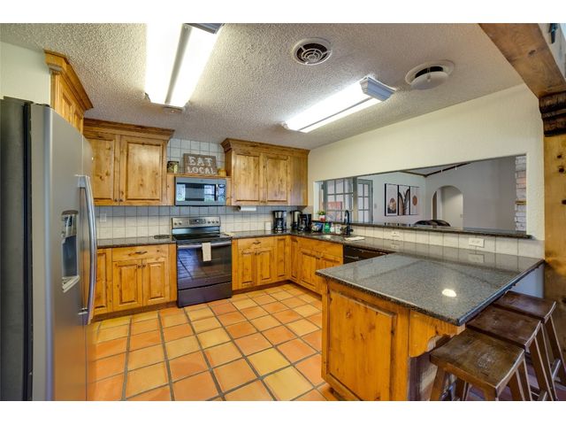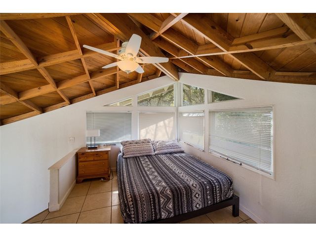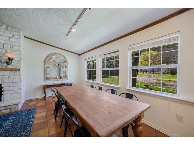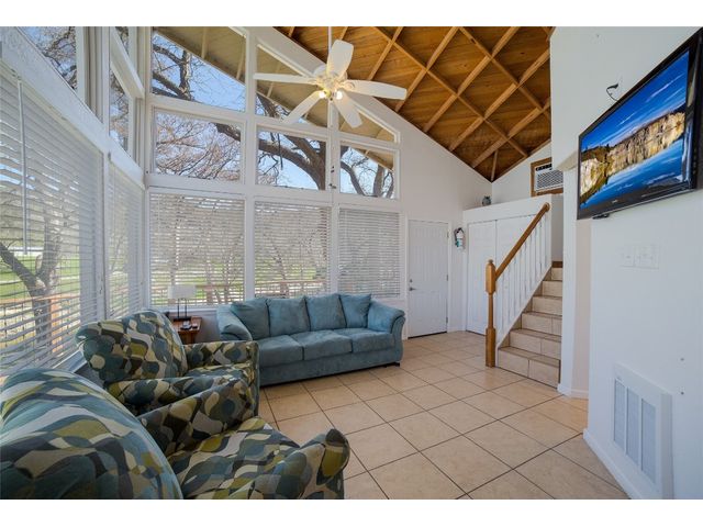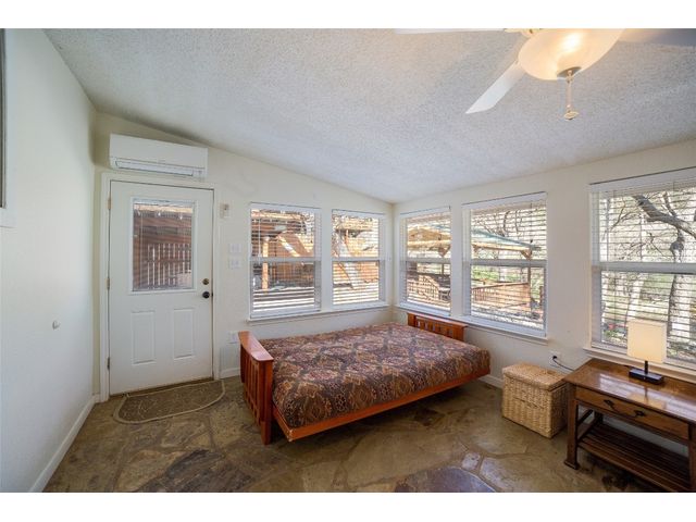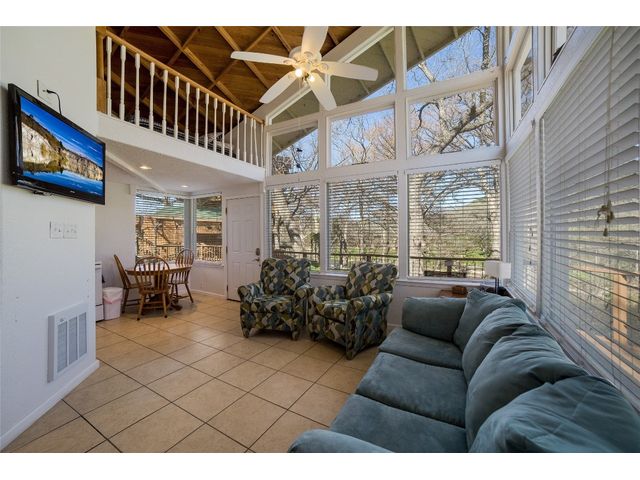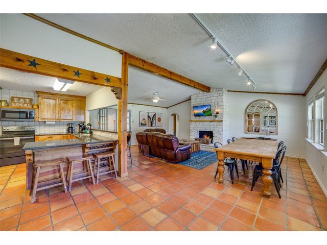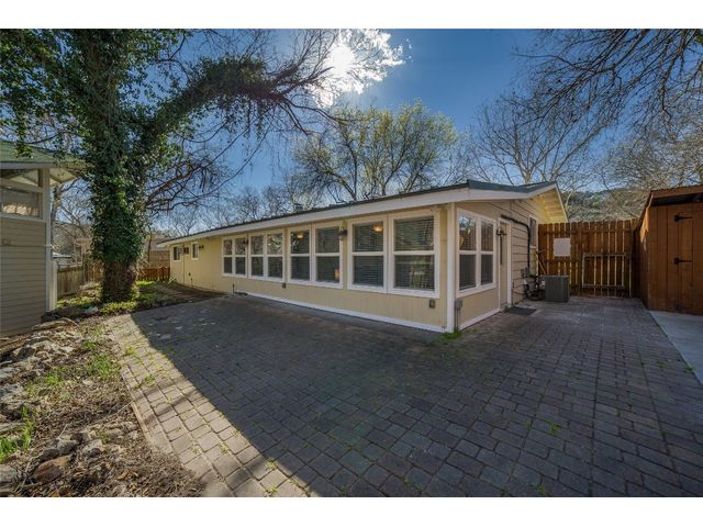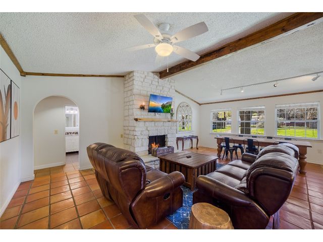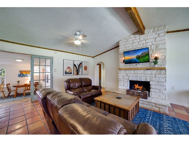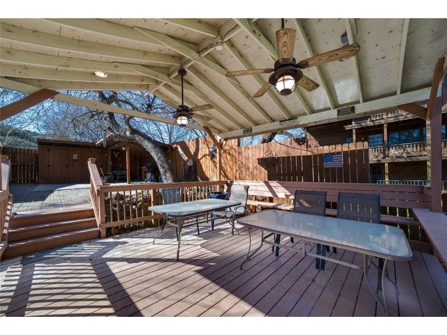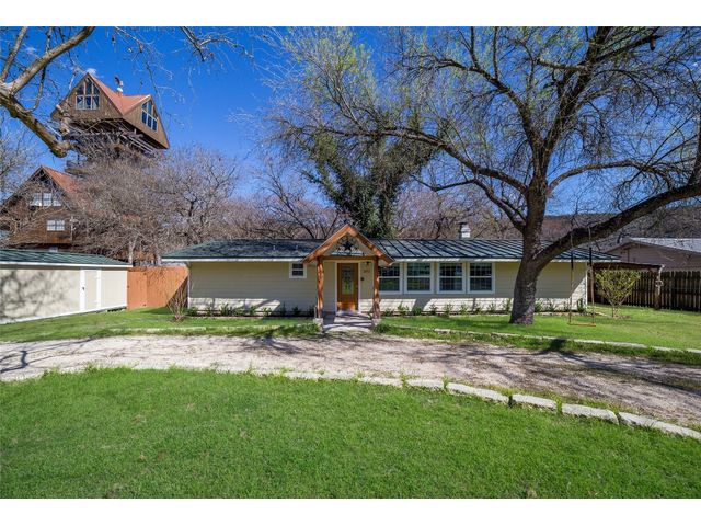 Step into your exclusive riverside sanctuary on the Guadalupe River! Meander down the pathway to the water's edge, where you can wade in or cast your line from the fishing dock. Boasting ample storage for all aquatic gear, indulge in river pursuits to your heart's content. As twilight descends, the outdoor areas illuminate with outdoor lighting surrounding the patio and covered deck. Whether you're hosting a barbecue on the expansive terrace or unwinding with a fine vintage, the river's expansive vistas provide a breathtaking backdrop for every gathering. Indoors, the relaxed sophistication persists with tiled floors and vaulted, beamed ceilings, infusing the living areas with an easygoing allure. The kitchen is a culinary haven, boasting granite countertops, bespoke cabinetry, and stainless steel appliances, facilitating effortless meal preparation. Post-dinner, gather around the crackling flames of the wood-burning fireplace in the living room, where warmth and coziness beckon you to linger a little longer. For those seeking seclusion, the detached guest quarters offer a loft bedroom adorned with vaulted ceilings, a quaint kitchenette, and a lounge area with sweeping river panoramas. Whether entertaining guests or seeking solace, this enchanting space strikes the perfect harmony. Main House is 2,088 sqft. 3/2 and Guest House is 400 sqft. with a loft bedroom and full bathroom.