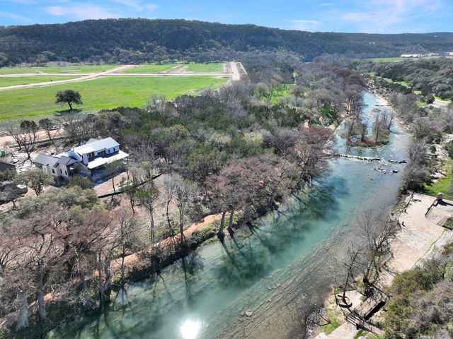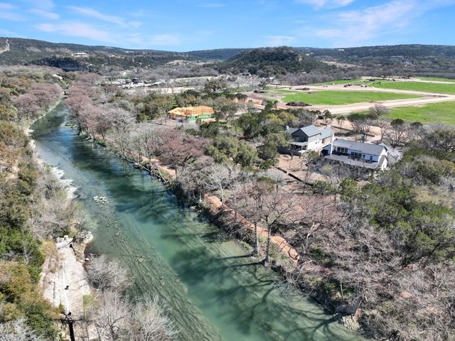 Your future riverside retreat was designed by renowned central Texas builder, Keith Wing. Perched on 136’ of Guadalupe Riverfront on a sprawling 1.11-acre lot adorned with majestic mature trees, this property promises a harmonious blend of natural beauty and modern convenience. Imagine hosting gatherings on the expansive covered patio, complete with a welcoming fireplace for chilly evenings. Delight your guests with culinary masterpieces from the outdoor kitchen, complete with a high-end BBQ grill, under-counter refrigerator, and convenient bar sink. And when the Texas sun blazes, cool off in the refreshing in-ground pool while soaking in panoramic river views—a perfect setting for summer relaxation and fun. Step indoors and envision the towering vaulted beamed ceilings, adding a touch of rustic charm to the spacious, open floor plan. Indulge your culinary passions in the gourmet kitchen, outfitted with a professional-grade 48” 6-burner gas range, sleek quartz countertops, custom cabinetry, and even a wine refrigerator for those special occasions. Retreat to the luxurious owner’s suite, where vaulted ceilings and private outdoor access provide a sanctuary-like ambiance. Share the riverside luxury with family and friends in the upstairs gaming area, complete with two sets of bunk beds for aquatic adventures on the Guadalupe River. Discover Canyon Lake & Gruene's charm just minutes away, and live music at the Whitewater Amphitheater, promising unparalleled luxury and leisure.