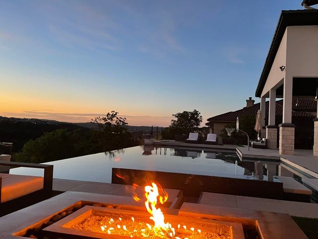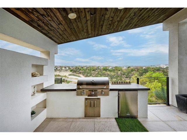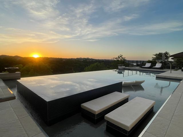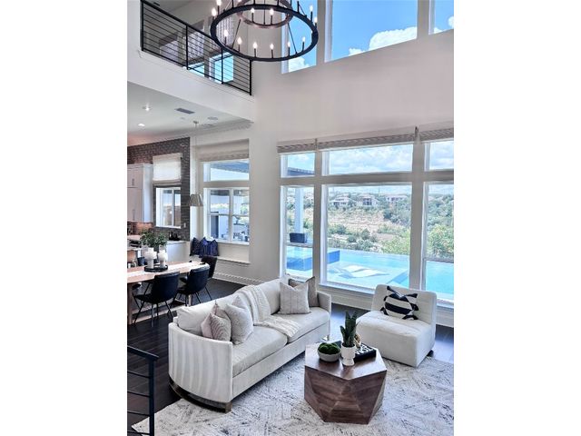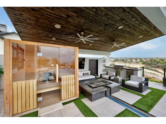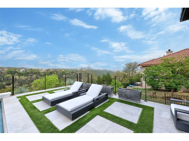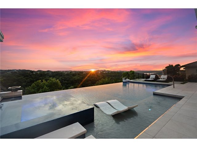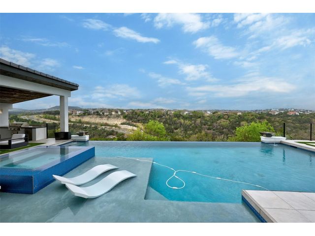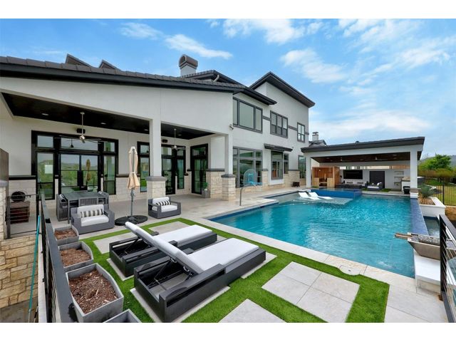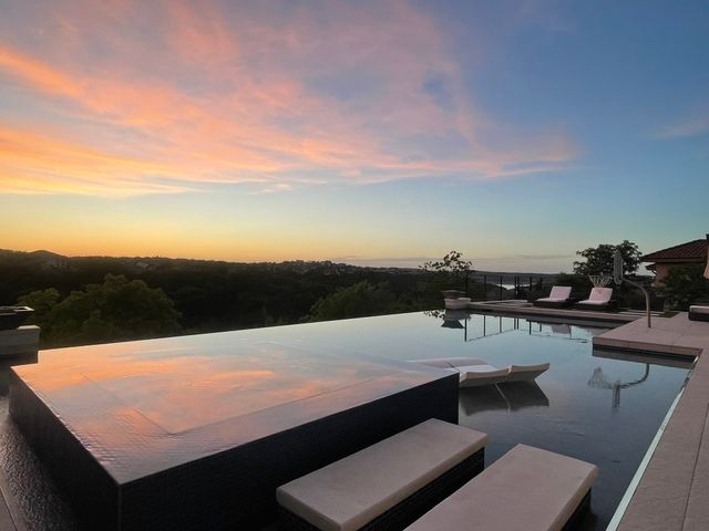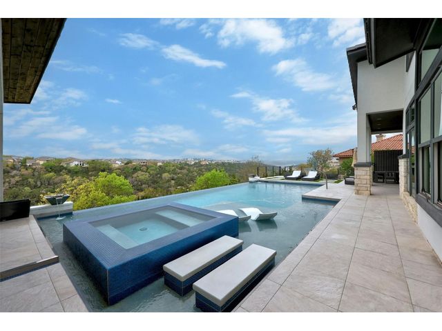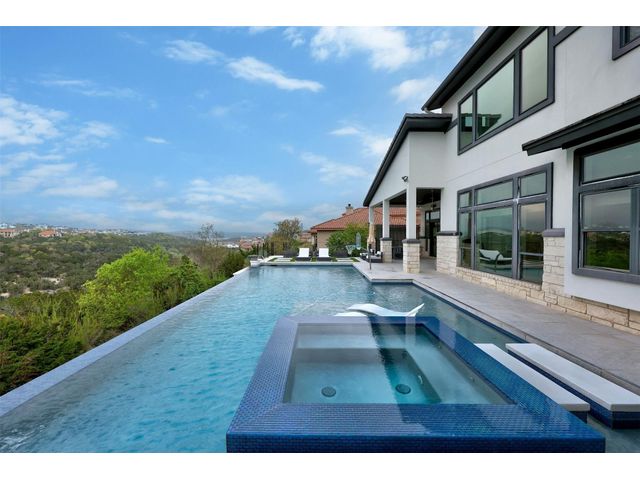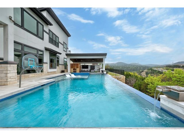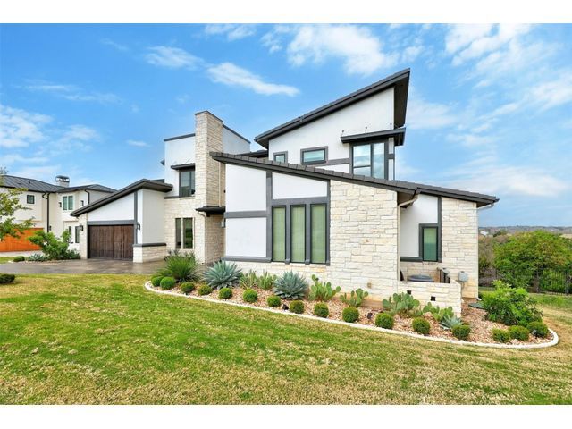 Introducing 309 Bisset in The Bluffs at Rough Hollow with breathtaking panoramic views of the hill country. This stunning contemporary home boasts a jaw-dropping pool with a modern and luxurious feel throughout. The ground floor features an open and bright plan with a breathtaking 2 1/2 story living room, seamlessly flowing into the chef's kitchen and formal dining room. On one side, you will find a tranquil first-floor primary suite is a true retreat, featuring a separate study, spa-like bath, and an incredible boutique closet for the fashion enthusiast. For guests, a spacious guest suite on the other side of the main floor provides privacy. Upstairs, three additional beds and two baths plus a game room ensure ample accommodation for the rest of the family. But the real showstopper is the dream patio, designed for outdoor enjoyment. This space features a gorgeous heated and chilled saltwater pool, a relaxing spa, a grill for al fresco dining, a cabana for lounging, sauna, as well as waterfalls, fountains, and fire pits for added ambiance. This home has it all, waiting for you to come and live the "rough life" in style. Don't miss the opportunity to experience luxury living in this contemporary masterpiece with unparalleled views.