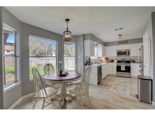 Welcome to Deer Ledge Trail, nestled in the heart of Cedar Park, where comfort and convenience meet. This spacious home offers an ideal blend of modern updates and cozy charm, perfect for families seeking both style and functionality. As you approach, you'll be greeted by the expansive yard, providing ample space for outdoor activities and relaxation. Step inside to discover a meticulously maintained interior featuring stainless steel appliances that elevate the kitchen's appeal, making meal preparation a delight. Upstairs, you'll find a sanctuary of rest with bedrooms, an office, and convenient laundry facilities, offering both privacy and convenience. Downstairs, the home boasts two inviting living areas and two dining spaces, ideal for hosting gatherings or enjoying quiet family dinners. Warm up by the fireplace on chilly evenings, creating memories with loved ones in the heart of the home. Located in a desirable neighborhood, this residence offers easy access to shopping, restaurants, and the highly rated Leander ISD schools, ensuring a lifestyle of convenience and quality education for your family. Don't miss the opportunity to make Deer Ledge Trail your new home, where every detail is designed to enhance your everyday living experience. Schedule a showing today and envision yourself living in this inviting retreat.