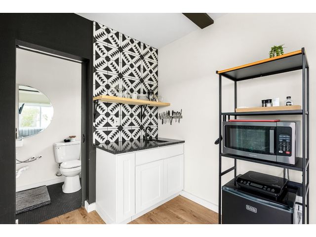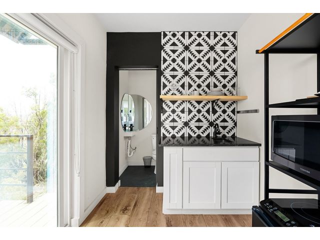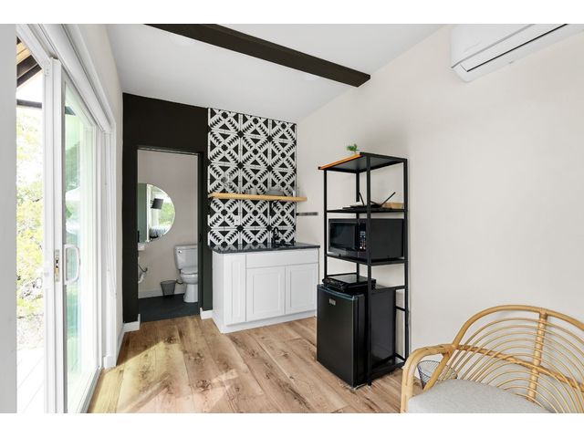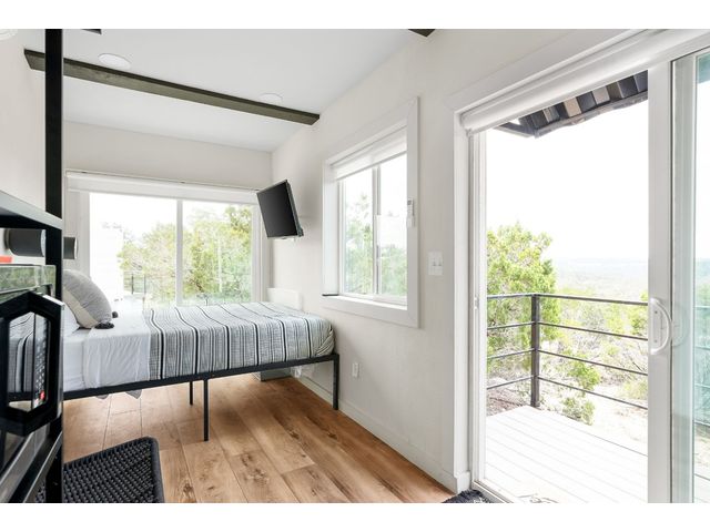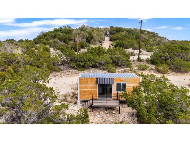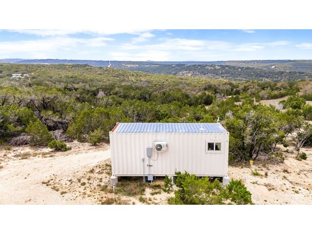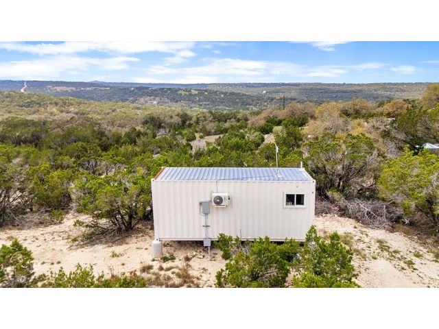 Welcome to your hill country retreat in the heart of Dripping Springs, Texas, where rustic charm meets modern luxury. Nestled amidst rolling hills, this extraordinary property offers not one, but two Kountry Container tiny homes, each a masterpiece of design and functionality. As you step inside, be greeted by the warmth of wide plank oak vinyl flooring and the character of exposed beams, creating a cozy and inviting atmosphere. Each tiny home boasts a thoughtfully designed interior featuring a queen bed adorned with wall-mounted sconces, a mini kitchen equipped with leathered granite countertops, and a stylish bathroom with penny tile floors and floor-to-ceiling subway tile showers. Embrace comfort in every season with the mini-split AC system ensuring a pleasant temperature, while the electric tankless water heater provides endless hot water for your convenience. Step outside onto the decks attached to each tiny home, where you can unwind and immerse yourself in the breathtaking views that stretch across the scenic landscape. Located in close proximity to renowned wineries, breweries, and wedding venues, this property offers not just a home, but a lifestyle. Enjoy it yourself or continue to utilize it as a turnkey vacation rental. Anything is possible in this picturesque setting, surrounded by the charm of Dripping Springs. That's not all – the potential for future development is already laid out with a 40’ x 8’ site pad. The groundwork has been meticulously prepared, featuring water, septic, and electric lines in place, providing the perfect canvas for expanding this remarkable property according to your dreams. Do note, that this property is on well water provided through a shared well agreement with the adjoining property. Don't miss the opportunity to make this hill country haven with its two tiny homes and future development potential your own. Experience the serenity, revel in the luxury, and savor the views at this unique Dripping Springs retreat.