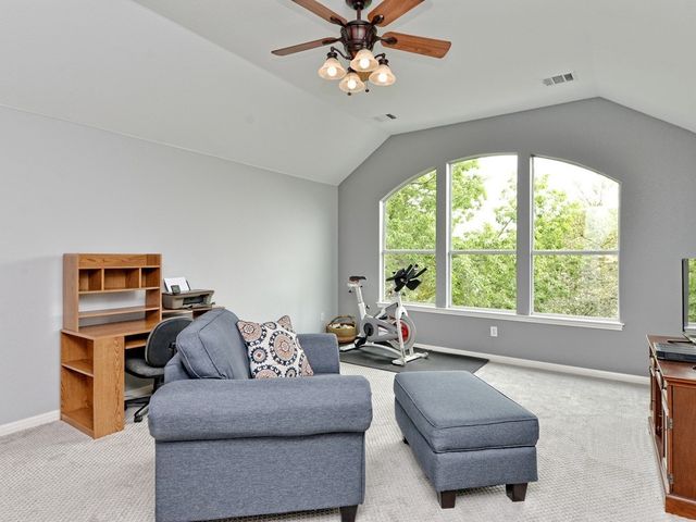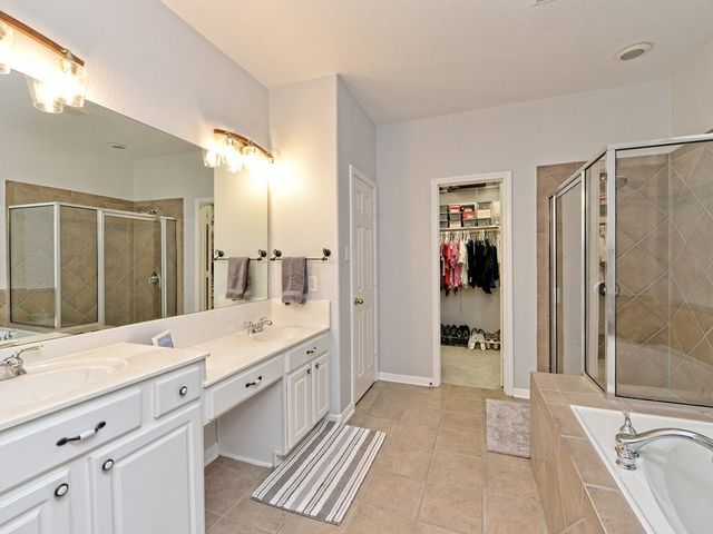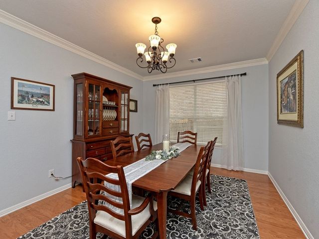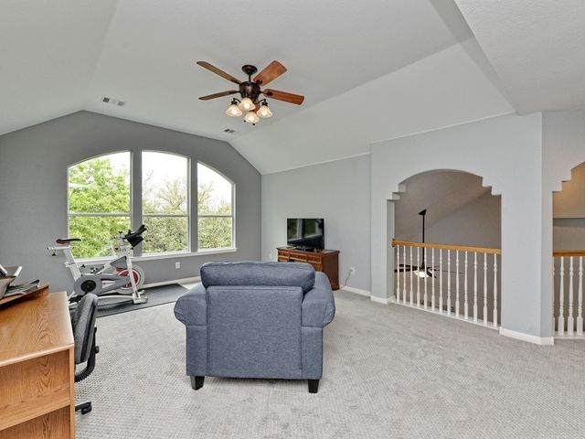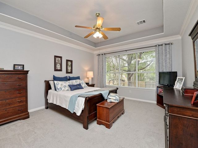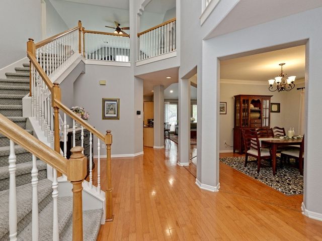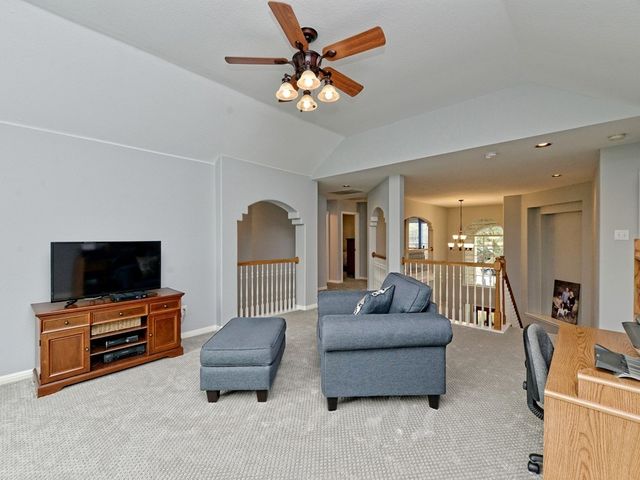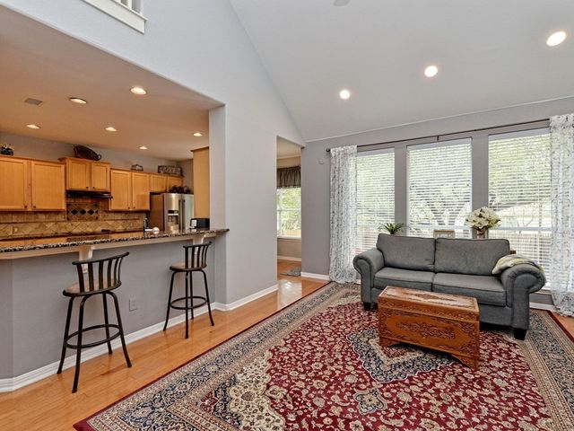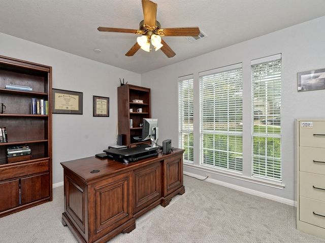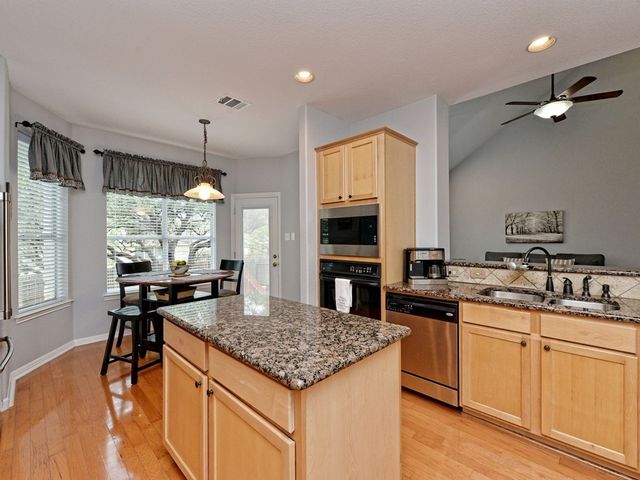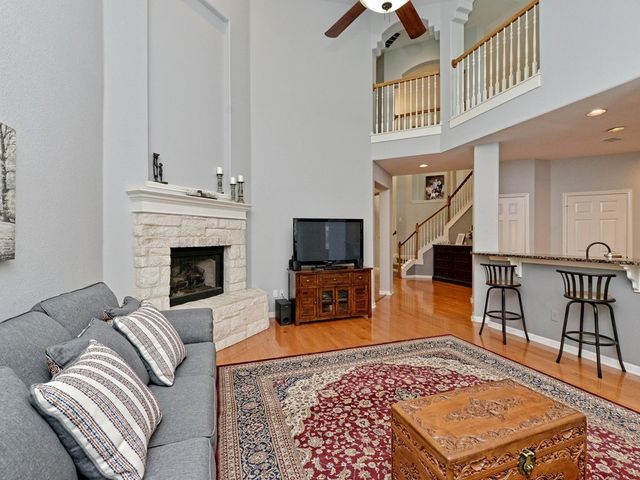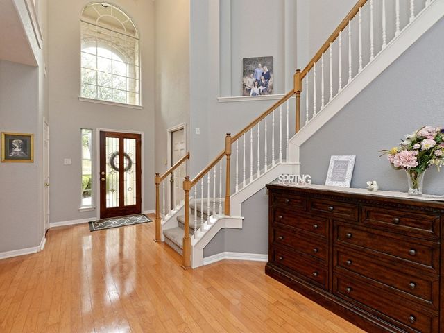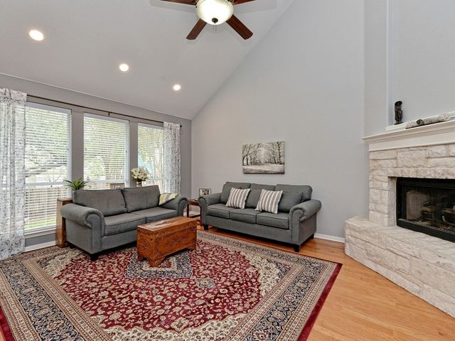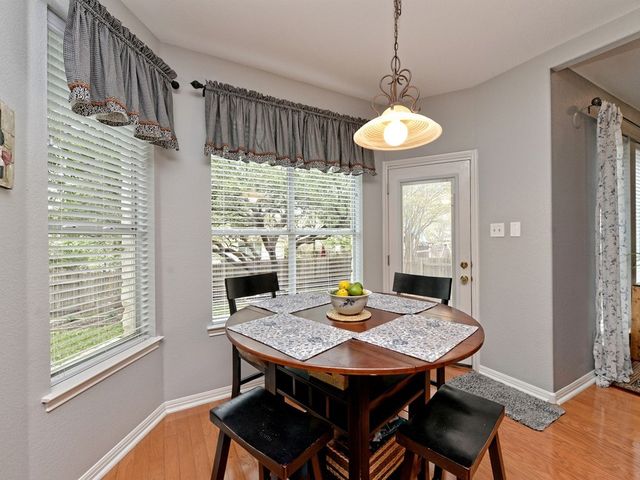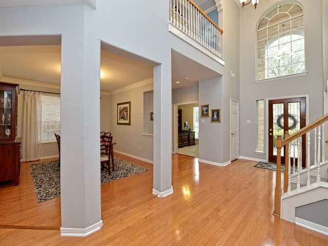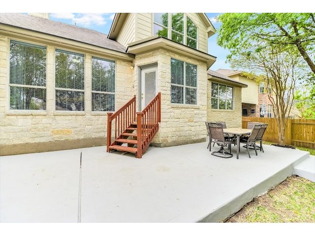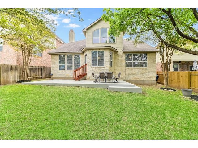Welcome to your dream home in the highly sought-after Steiner Ranch community! This exquisite property boasts many upgrades and everything you've been searching for and more! Nestled in the heart of Steiner Ranch, this stunning residence offers 3132 square feet of luxurious living space featuring 5 bedrooms, 4 full baths and a 2-car garage. With 2 expansive living areas, 2" blinds, formal and intimate dining spaces, and gleaming hardwood, tile, and carpet flooring throughout, this home exudes elegance and comfort. The exterior is equally impressive, with a charming blend of stone and Hardi plank siding, providing both durability and curb appeal. Safety and convenience are paramount with security and sprinkler systems already in place. Step inside to discover high ceilings, a beautifully appointed office/5th bedroom/MIL Plan, a gourmet kitchen complete with granite countertops and stainless steel appliances. The spacious master suite, located on the main level, offers double vanities, a deep jetted tub, separate shower, and ample closet space. Upstairs, you'll find large secondary bedrooms and a game room flooded with natural light from walls of windows, creating a bright and inviting atmosphere. Entertain guests or relax with family on the huge outdoor patio surrounded by custom landscaping and mature trees, providing privacy and serenity. Conveniently situated near popular schools, shopping centers, fine dining, parks, pools, tennis courts, and scenic trails, this home offers the perfect blend of luxury and convenience. Enjoy easy access to Lake Austin, Lake Travis, and major thoroughfares, ensuring endless opportunities for recreation and exploration. Don't miss your chance to experience the best of Steiner Ranch living - schedule your showing today and discover all that this remarkable home has to offer!
