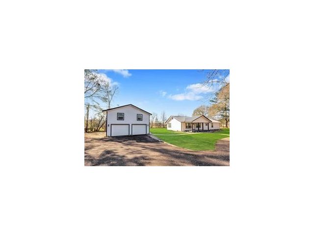 Beautifully renovated 3 bedroom, 2 bath home with separate guest apartment located in Tarkington ISD! Long driveway leads up to the home which is situated on 1.62 unrestricted acres! The 2-car detached garage has a recently renovated 1bdr/1ba garage apartment upstairs! Charming front porch, spacious light & bright kitchen with beautiful apron sink and tons of cabinet space and gorgeous laminate floors throughout. Living area has tons of natural light, beautiful mock fireplace and wood ceiling accent beams. Primary bedroom with ensuite bath featuring double sinks, tub/shower combo and large walk-in closet.
