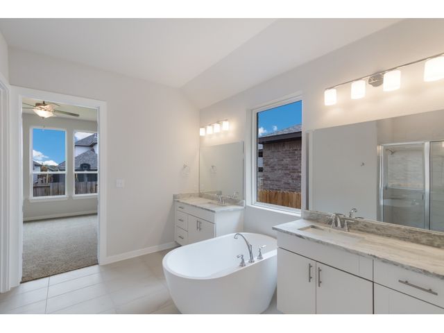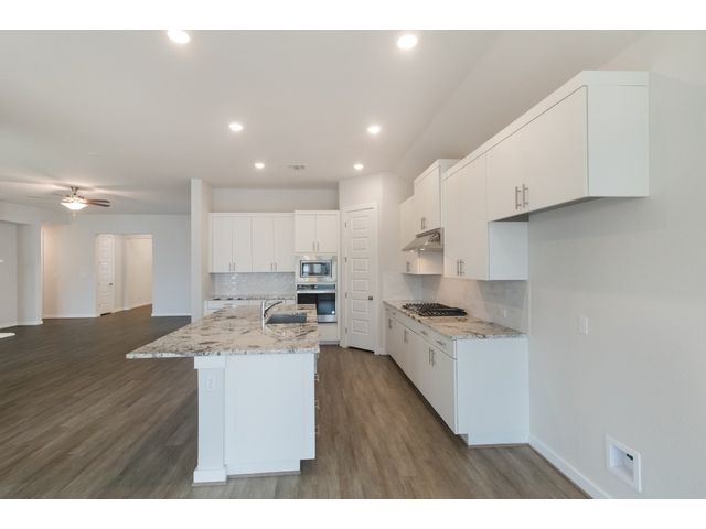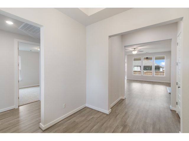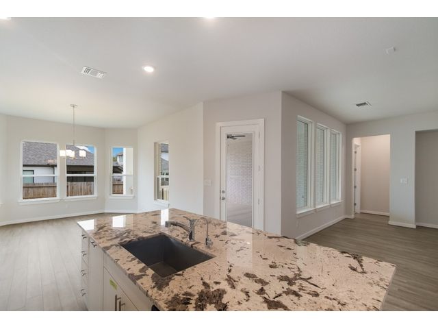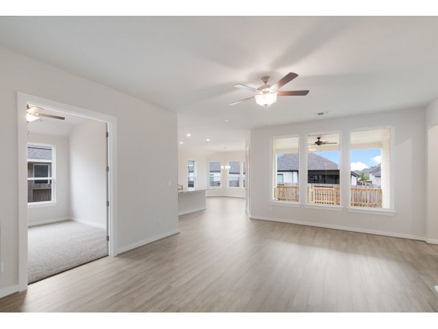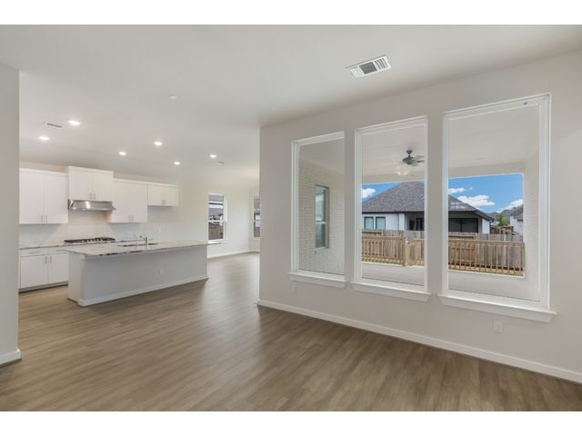 The beautifully attractive Hillsboro design has been a family favorite to call home! This beautiful 4 bedrooms, 3 baths, 2 car garage, shower seat in master bath, fireplace featuring open concept living. Features a large family room, study, tank less water heater, over the fridge cabinets, featuring Whirlpool built in appliances. This home features an Extended Covered Patio which is a great place for entertainment. Come out to see this beauty. The home is located in the highly desired Veramendi community, which features almost 500 acres of parks, a community pool, elementary school, with a second planned in 2025, a planned town square, and will have approximately 20 miles of hike/bike trails throughout the community! A great place for those who love to exercise, or raise a family.