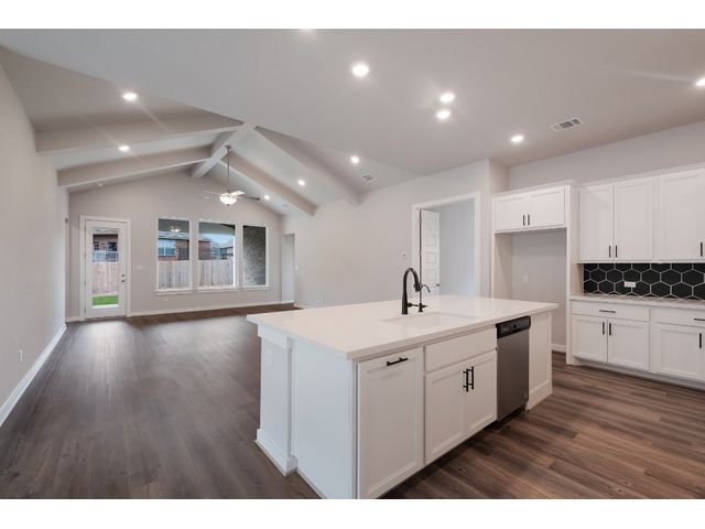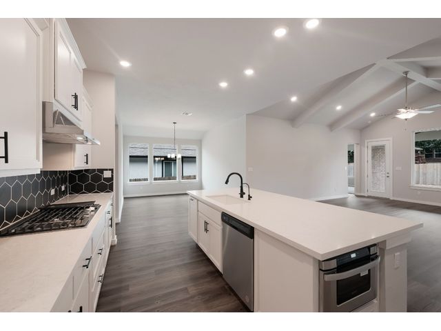 This beautiful Jester home on 317 Vuelo St. includes 4 bedrooms, 3 baths, game room, home office & 3 car garage! The Primary Suite offers a spacious walk-in shower, dual vanities and two large closets. The kitchen features upgraded white cabinets, upgraded black hexagon tile backsplash & quartz countertops, pot/pan drawer under cooktop, large island for extra seating, & built-in stainless-steel appliances. Enjoy the spacious living room with plenty of natural light and to top it off for your outdoor enjoyment & relaxation there’s an extended covered patio with gas line perfect for a future kitchen! The home is located in the highly desired Veramendi community, which features almost 500 acres of parks, a community pool, elementary school, with a second planned in 2025, a planned town square, and will have approximately 20 miles of hike/bike trails throughout the community! A great place for those who love to exercise, or raise a family.